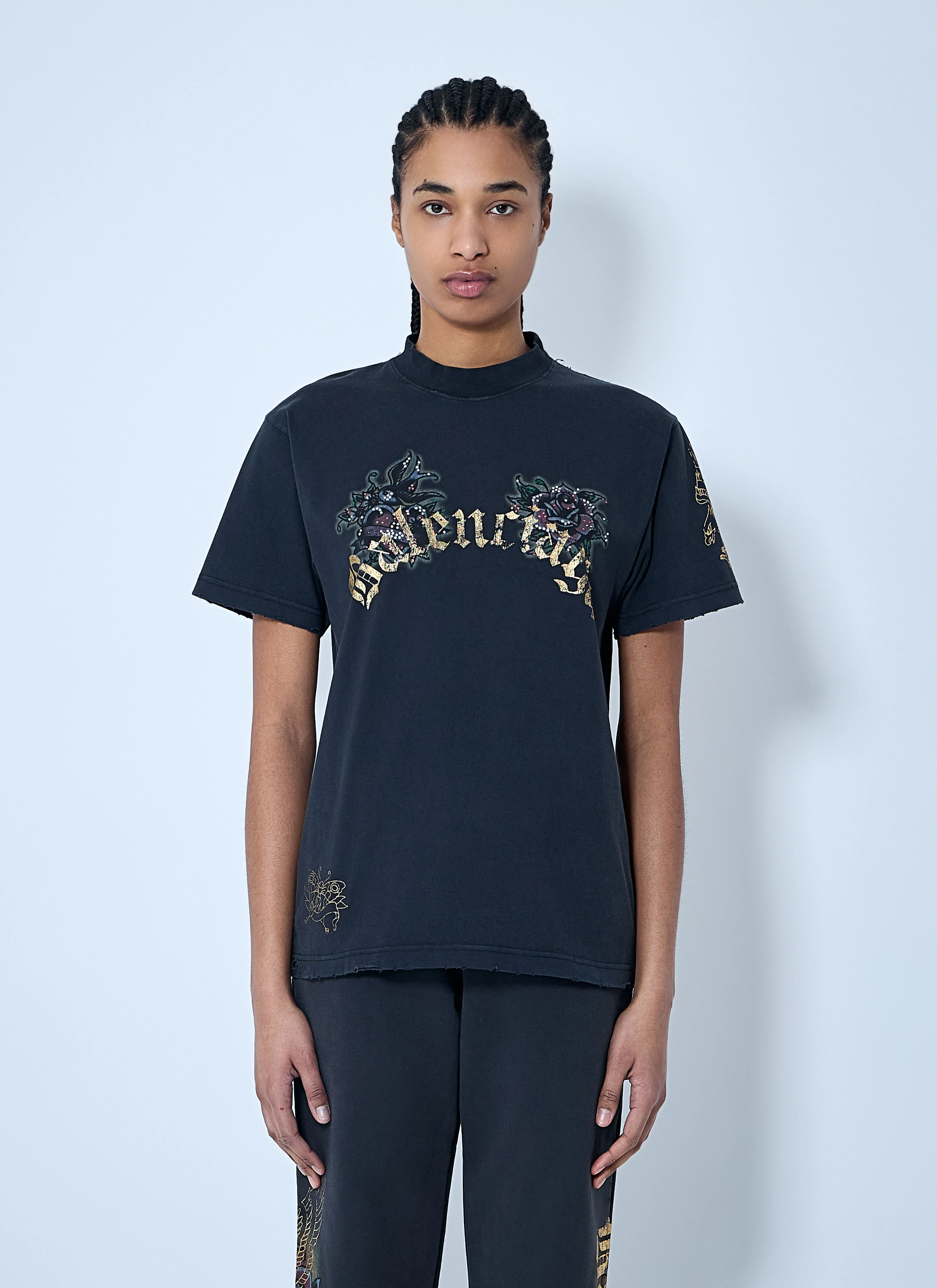 Logo motif T-shirt in cotton jersey. - Crewneck - Short sleeves - Front logo print - All-over tacky tattoo motif - 100% Cotton. Machine wash cold - Color: Black - Code: 809122 TRVZ2 1041