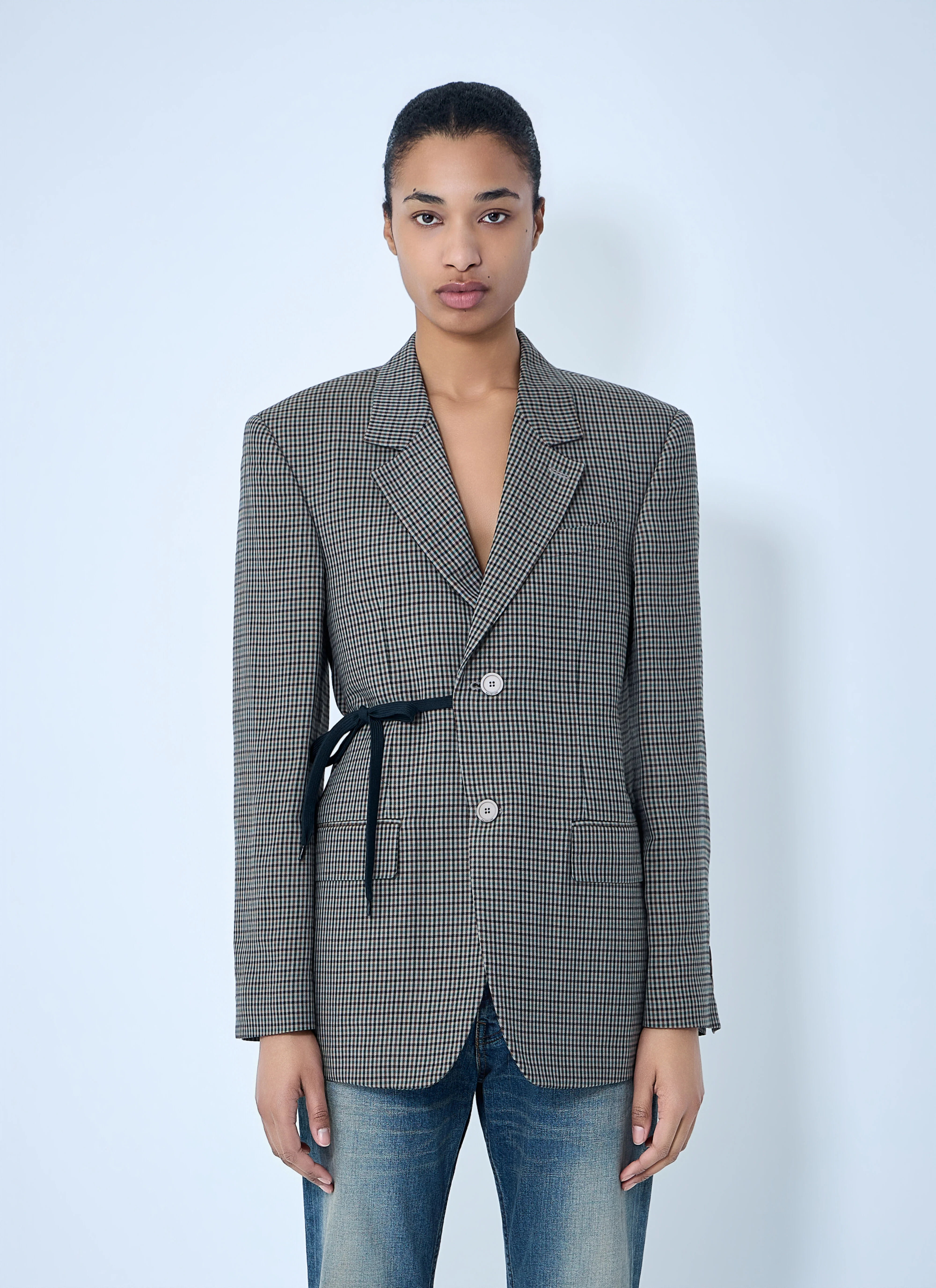 Single-breasted blazer in check pattern with tie detail. - Notched lapels - Button front fastening - Front patch pockets - Adjustable tie detail - 100% Lyocell 100% Cupro 100% Cotton - Color: Grey - Code: 857365 TTO38 2866