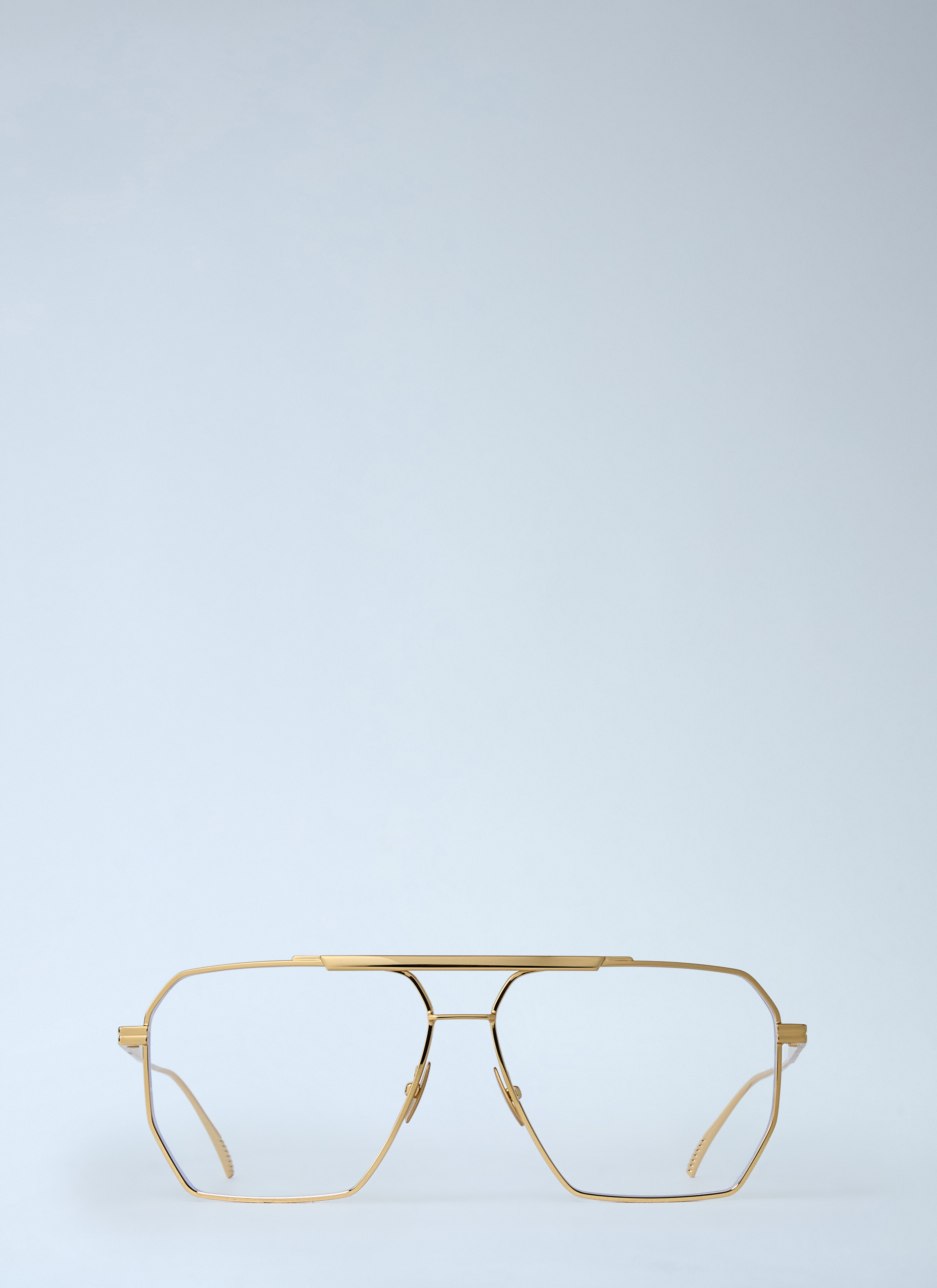 Aviator glasses in metal construction. - Aviator frames - Clear lenses - Logo motif - Made in Italy - 100% Technical Fabrication Blend - Color: Gold - Code: 590248 V4450 1419