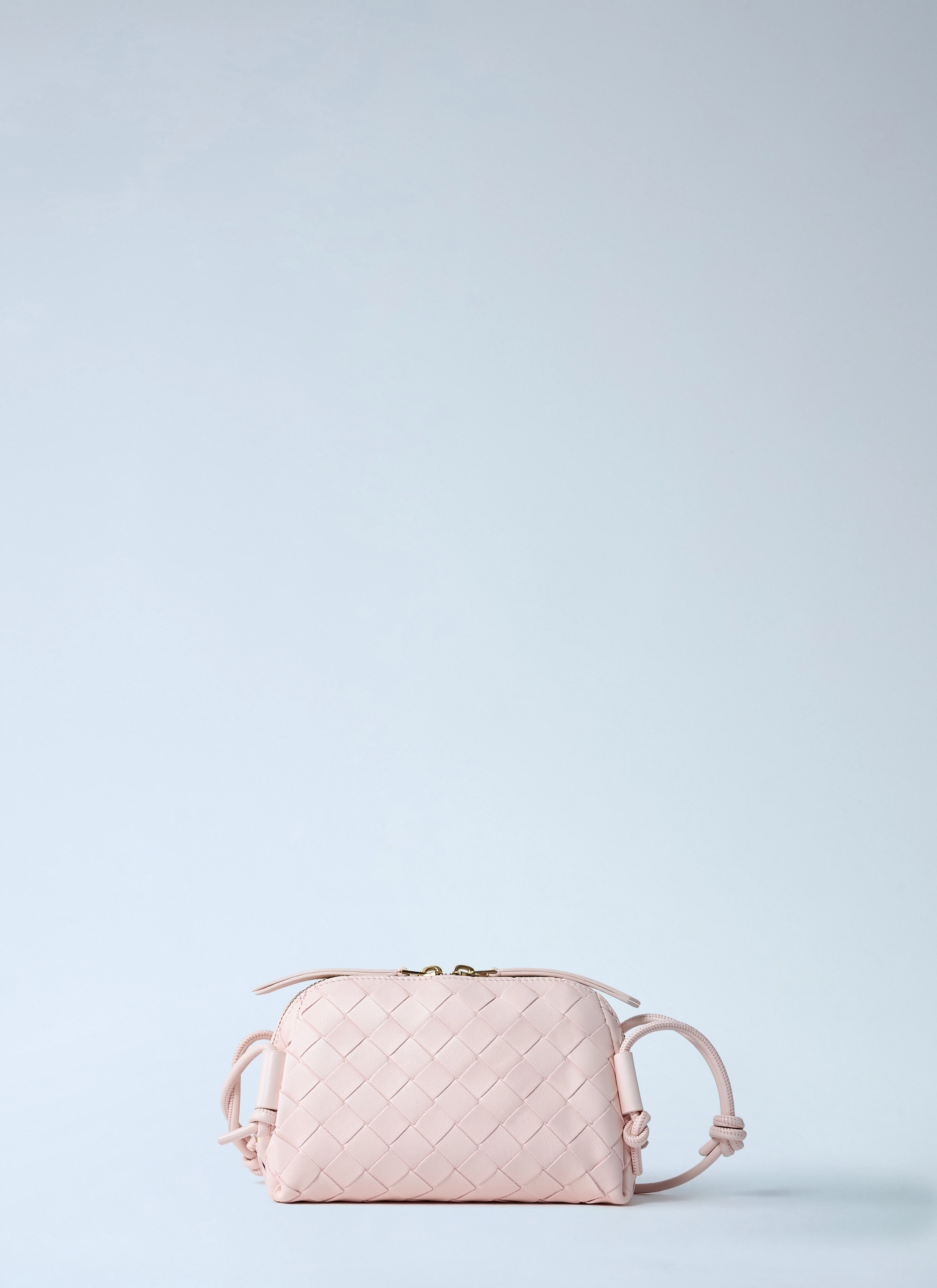 Pouch in Intrecciato leather with adjustable tubular strap featuring sliding knot details. - Adjustable shoulder strap - Top zip fastening - One main compartment - Made in Italy - 100% Leather - Color: Pink - Code: 794258 VCPP1 5965