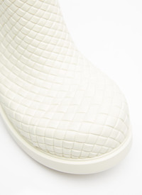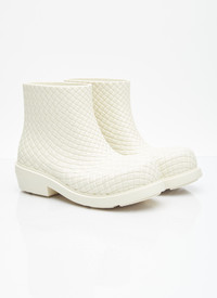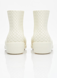 Fireman ankle boots in biodegradable rubber with Intrecciato motif. - Round toe - Ergonomic leather insole - Intrecciato motif - Block heel - Made in Italy - 100% Rubber - Color: White - Code: 764422 V3OE0 9031