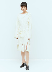 Panel top with fringe hem. - Boat neck - Side zip fastening - Long sleeves - Panel construction - Fringe hem - Made in Italy - 100% Technical Blend Fabrication - Color: Cream - Code: 786702 V3Z10 9204