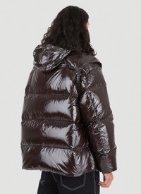- Technical fabrication in a high-shine finish - Funnel neck - Concealed hood - Long sleeves - Elasticated cuffs - Side pockets - All-over quilted padding - Zip pocket at nape - Drawstring hem - Made in Italy - 100% Polyamide. Fill: 90% Down, 10% Feathers. Machine wash cold - Color: Brown - Code: 665999 V0Y30 2184