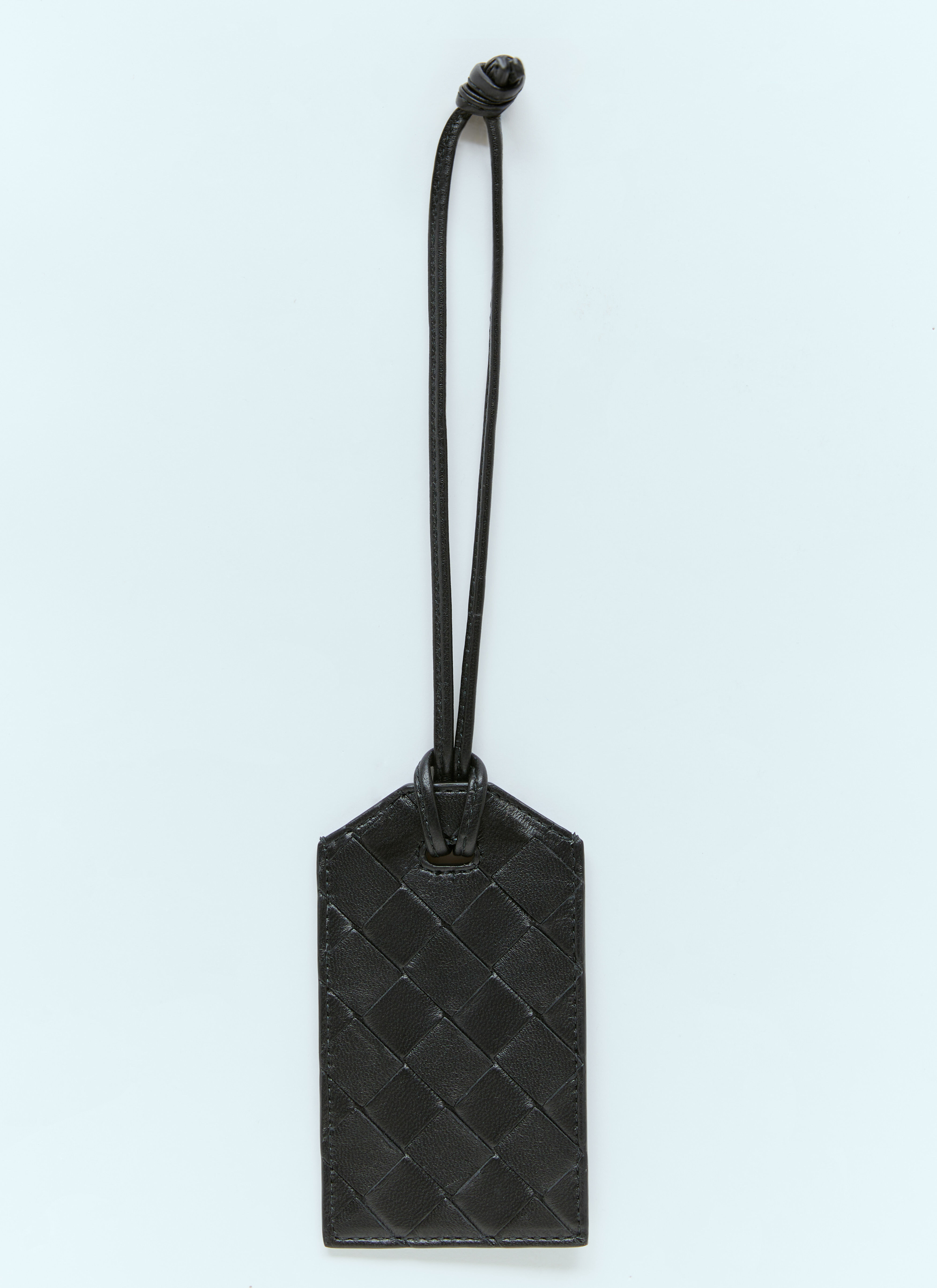 Intrecciato tag holder in leather. - Detachable leather strap - Window to display paper tag - Intrecciato weave - Made in Italy - 100% Leather - Color: Black - Code: 787875 VCP3H 1000