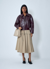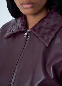 Blouson jacket in midweight soft leather with Intrecciato leather collar. - Classic collar - Front zip fastening - Long sleeves - Side slip pockets - Ribbed hem - 100% Leather. Specialist dry clean - Color: Burgundy - Code: 832893 V5BX0 6206