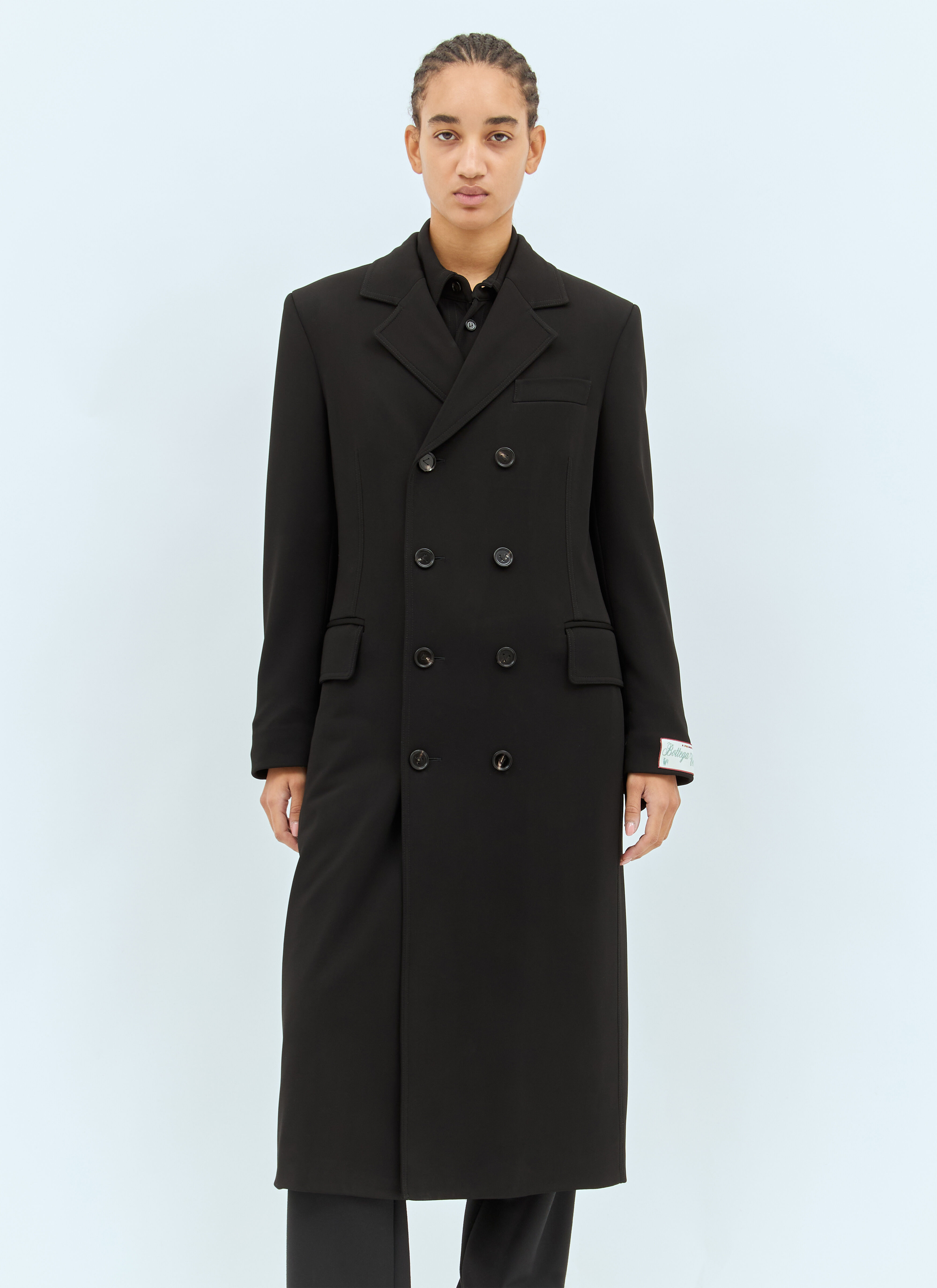 Matt fluid viscose jersey coat with logo patch at cuff. - Notched lapes - Front double-breasted button fastening - Shoulder pads - Long sleeves - Logo patch at cuff - Rear vent - Non-function buttons at cuffs - Front flap pockets - Fully lined - Made in Italy - 100% Viscose. Lining: 62% Cotton, 35% Viscose, 3% Polyester. Dry clean - Color: Black - Code: 797366 V4N00 1000