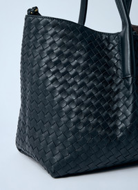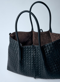 Reversible leather handbag in Intrecciato weave. - Twin handles - Top self-tie fastening - Intrecciato weave - One main compartment - Detachable interior zippered pouch - Reversible side: Suede finish - Made in Italy - 100% Leather - Color: Black - Code: 817166 V5AG1 1206