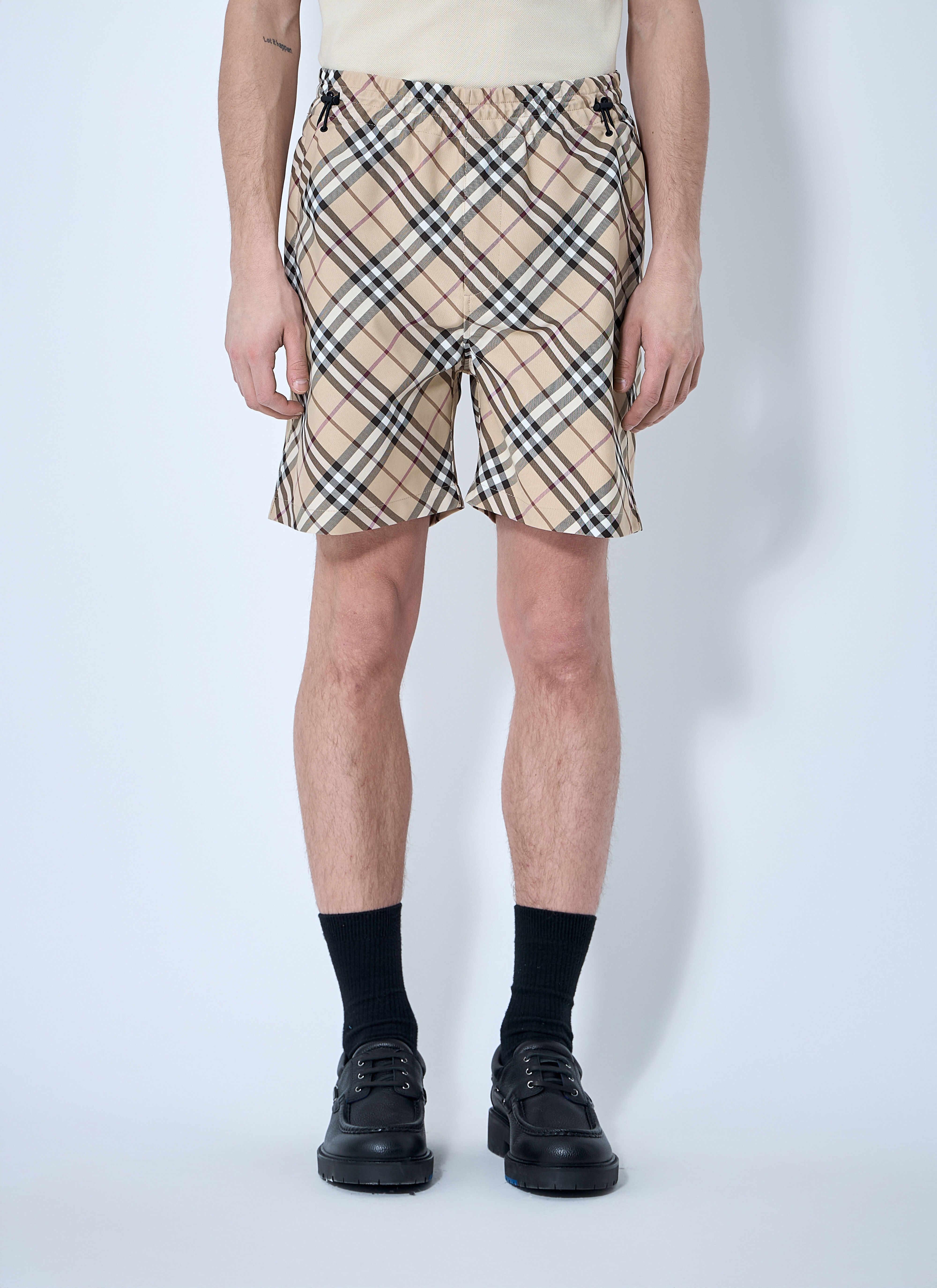 Signature check motif shorts with elasticated waistband. - Mid rise - Elasticated waistband - Side zip fastening pockets - Rear patch pocket with logo applique - 100% Polyester. Dry clean - Color: Beige - Code: 8102231 A5686
