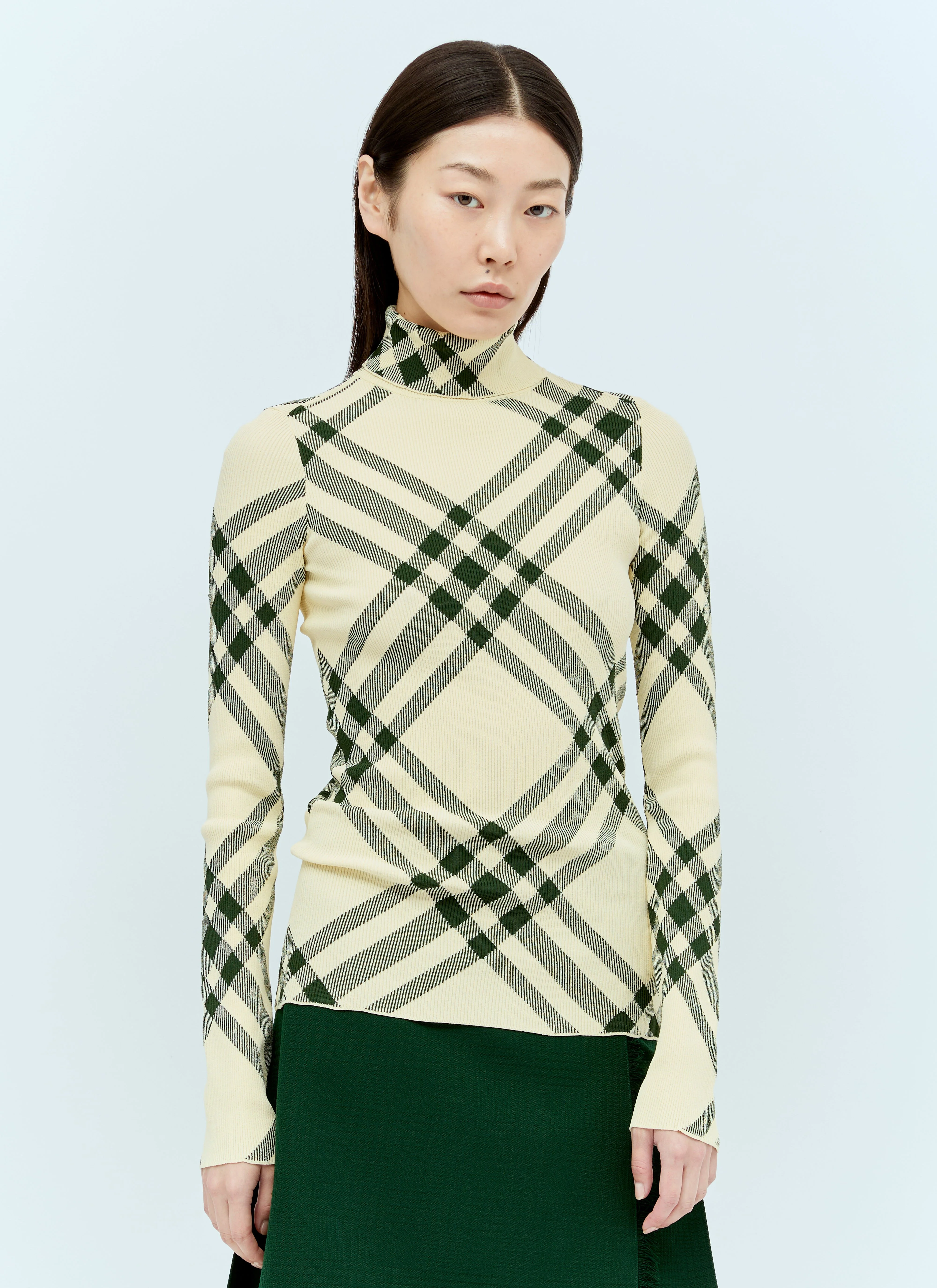 Ribbed sweater in check motif. - High neck - Long sleeves - Check motif - Ribbed - Made in Italy - 84% Viscose, 16% Polyester. Dry clean - Color: Yellow - Code: 8080965 B8660