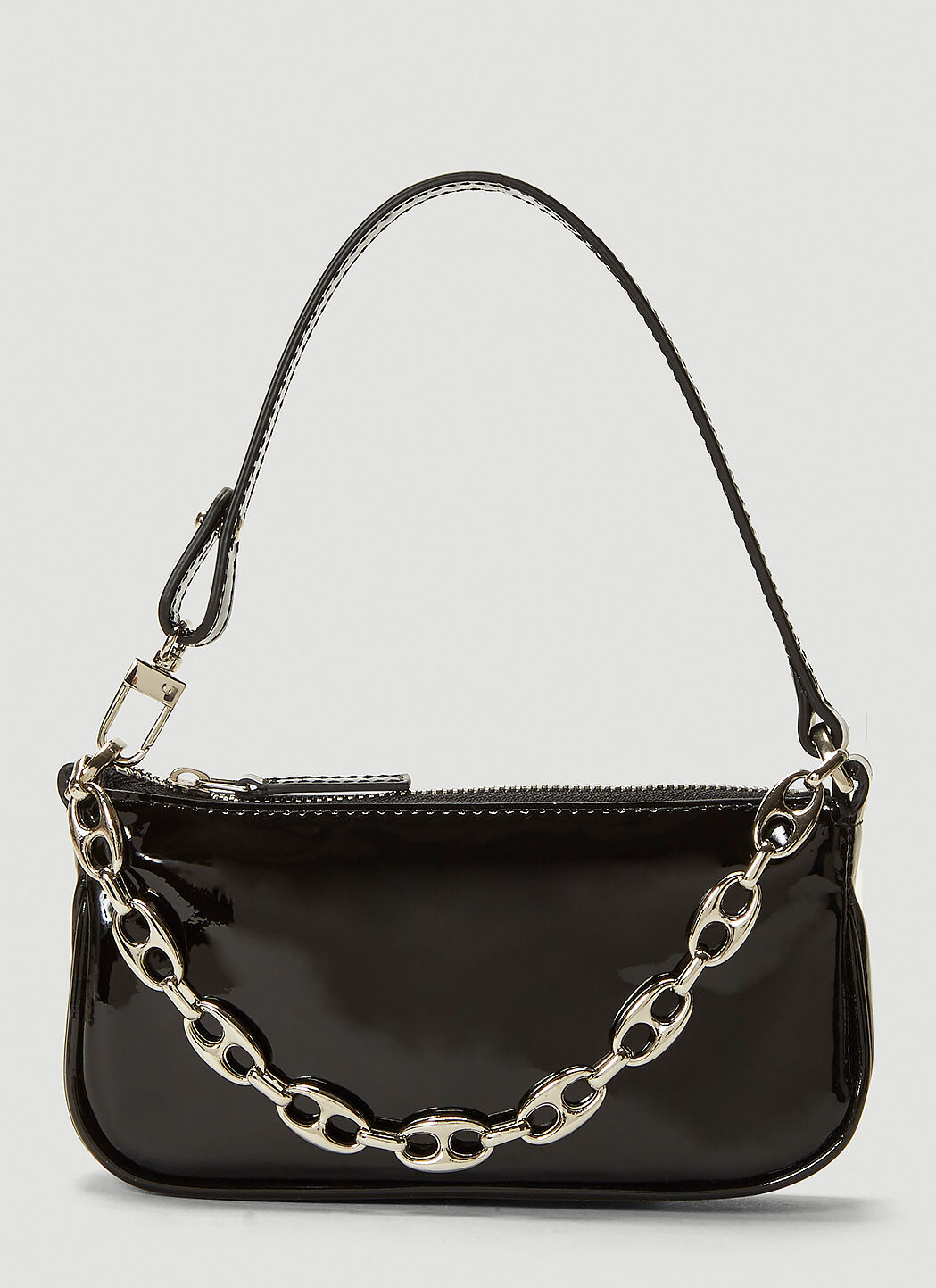 Patent leather shoulder bag. - Top handle - Detachable leather handle - Top zip fastening - All-over studs - One main compartment - 100% Leather. - Color: Black - Code: 20SSMIRABLPSMA