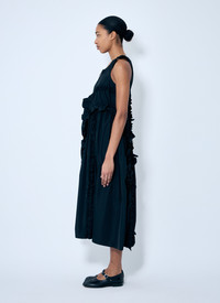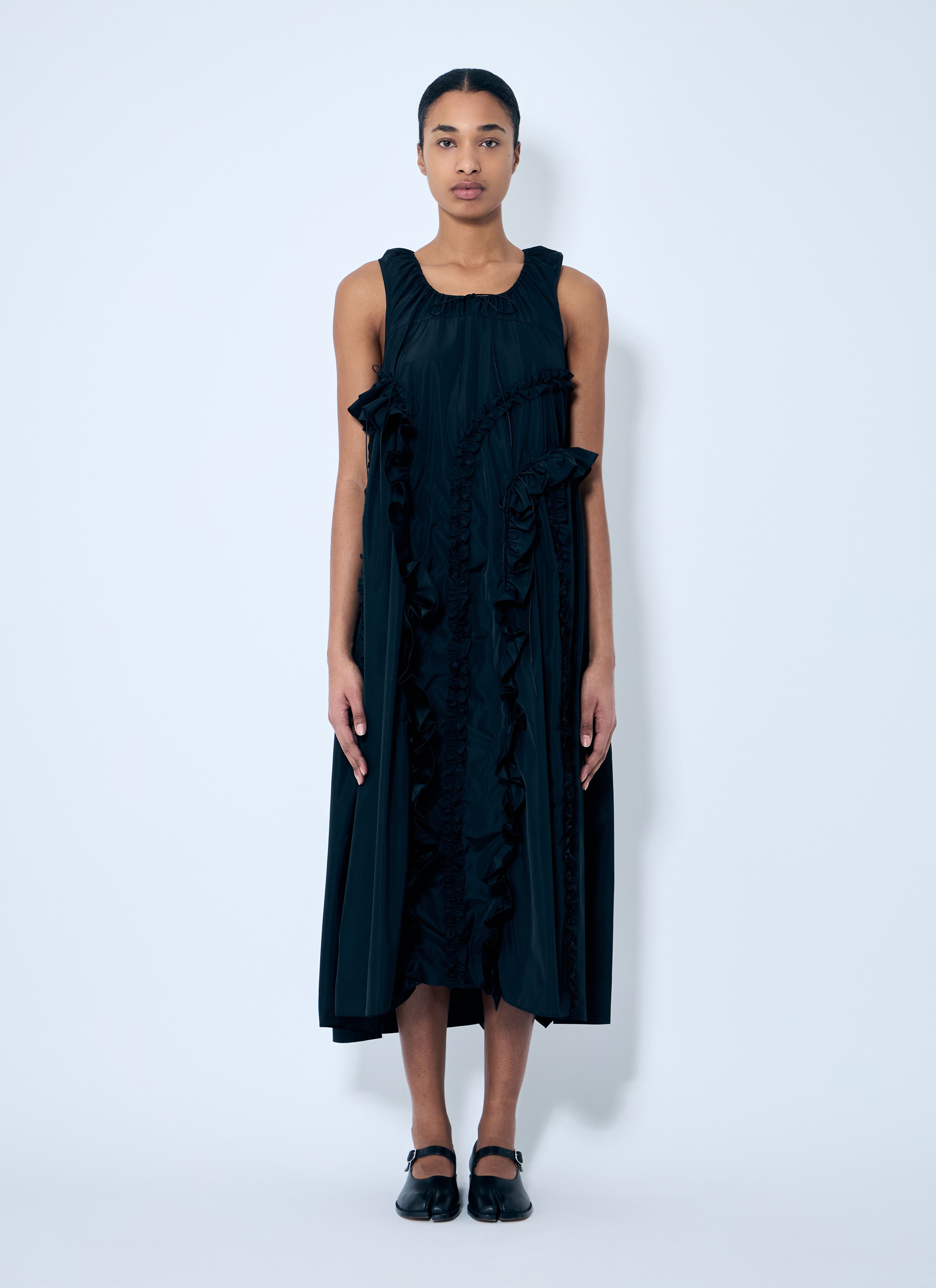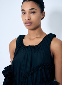 Maxi dress with gathered in construction with ruffled panels. - Gathered crewneck - All-over gathered construction with tie-up bows - 100% Recycled polyester. Machine wash cold - Color: Black - Code: 4.24RTW10002 OPAL DRESS BLACK