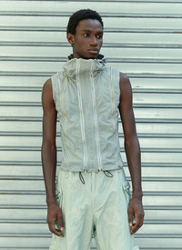 Ripstop zip-up vest with all-over zips. - Hood - Front zip fastening - All-over zips - Made in London - 100% Nylon. Machine wash cold - Color: Blue - Code: CCS2_TOP_ADJZIP_AQUADEIP