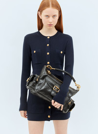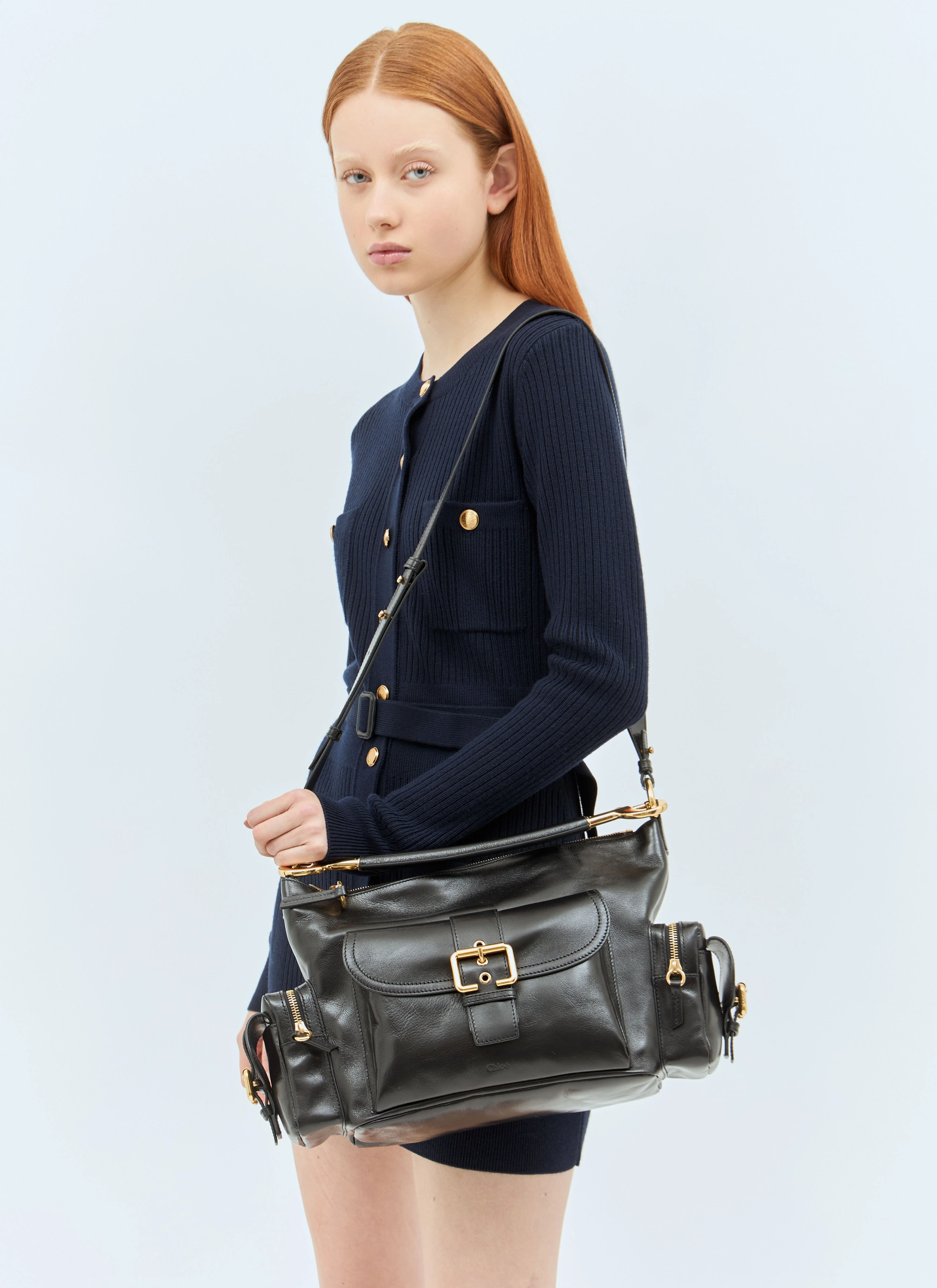 Camera shoulder bag in shiny leather. - Top handle - Detachable adjustable shoulder strap - Top zip fastening - Front flap pocket - Side zip pockets - One main compartment - Interior slip pocket - Made in Italy - 100% Leather - Color: Black - Code: CHC24AS533N83 001