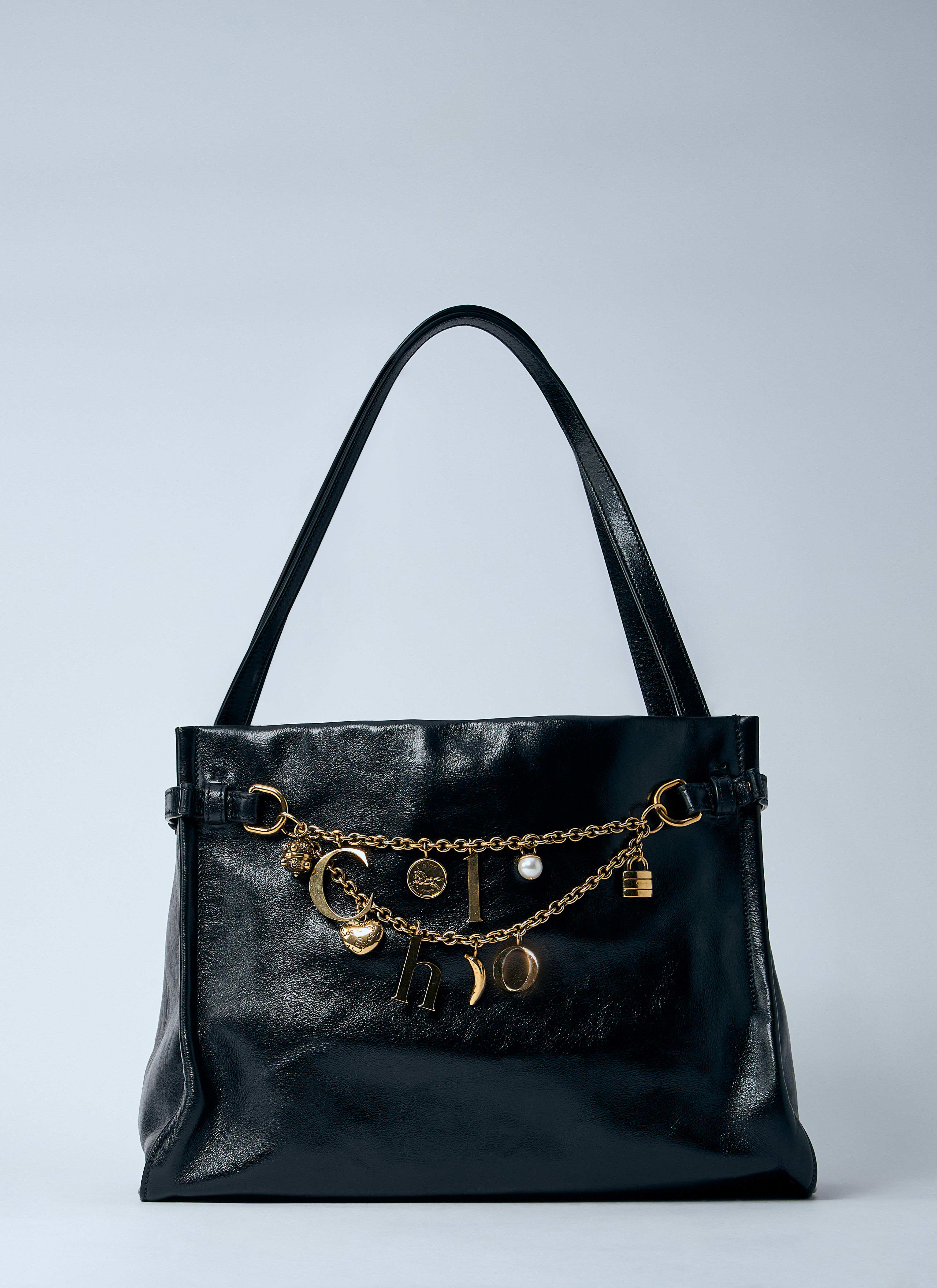 Charm hobo bag in leather with multiple logo hardware. - Twin handles - Magnetic fastening - One main compartment - Logo hardware - Made in Italy - 100% Leather - Color: Black - Code: CH25AS870P60001