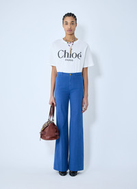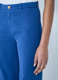 Flared tailored pants in cotton canvas. - High rise - Top-button and zip-fly fastening - Belt loops - Side slip pockets - Rear welt pocket - 100% Cotton. Dry clean - Color: Blue - Code: CH25SPA76365 401