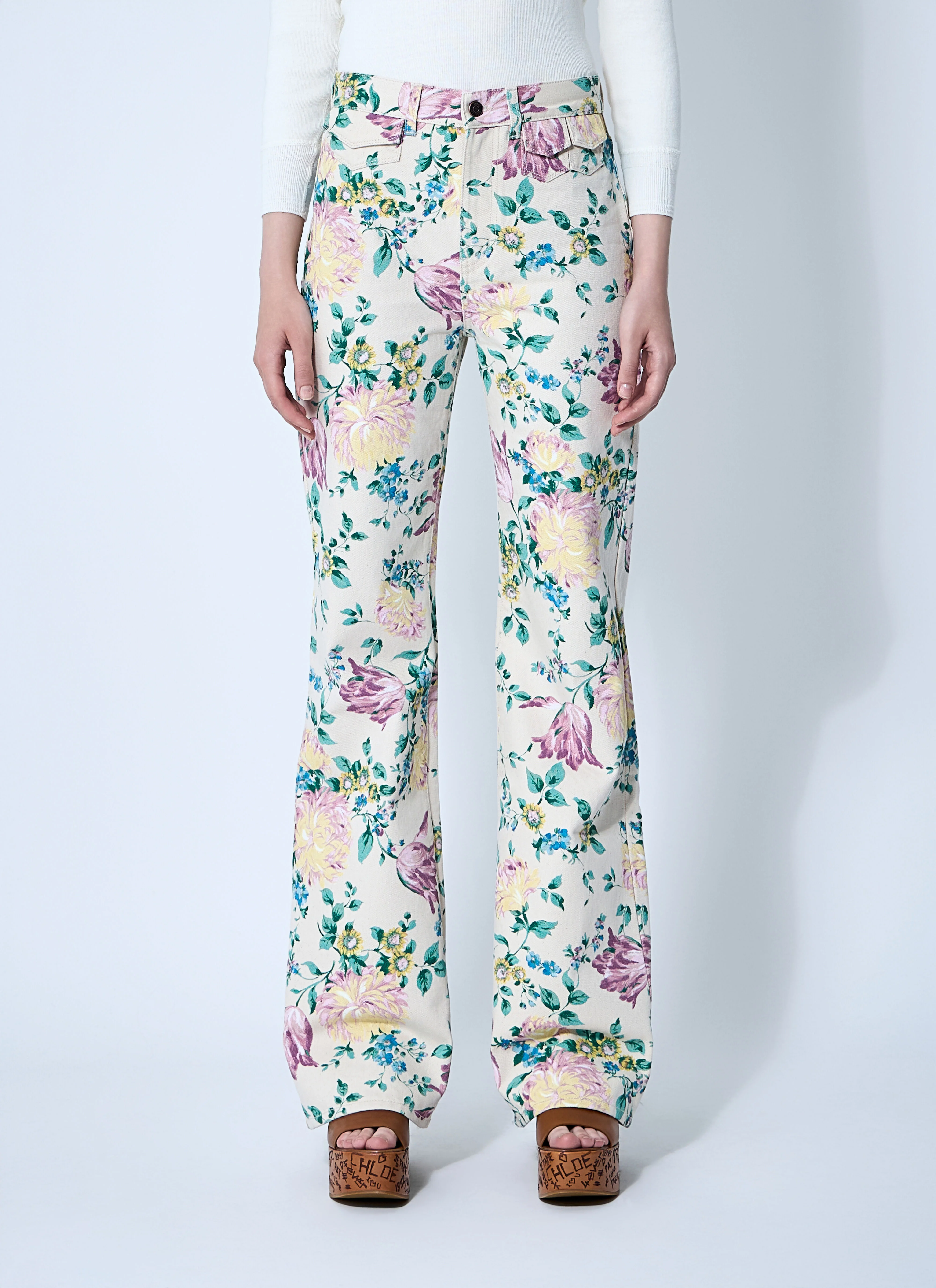 Jeans in floral denim weave. - Mid rise - Top-button and zip-fly fastening - Belt loops - Front flap pockets - Rear patch pockets - 100% Cotton. Dry clean - Color: Blue - Code: CH25UDP03256468