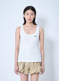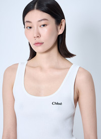 Jersey tank top with logo motif at chest. - Scoop neck - Camisole straps - Logo motif at chest - Straight hem - 100% Cotton. Dry clean - Color: White - Code: CH25SJH12180 101