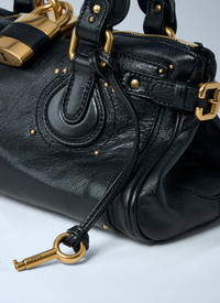 Leather in pebble-grain finish. - Twin handles - Top zip fastening - Functioning padlock and key design - One main compartment - Gold-tone hardware - 100% Leather - Color: Black - Code: CH25WS802P75 001