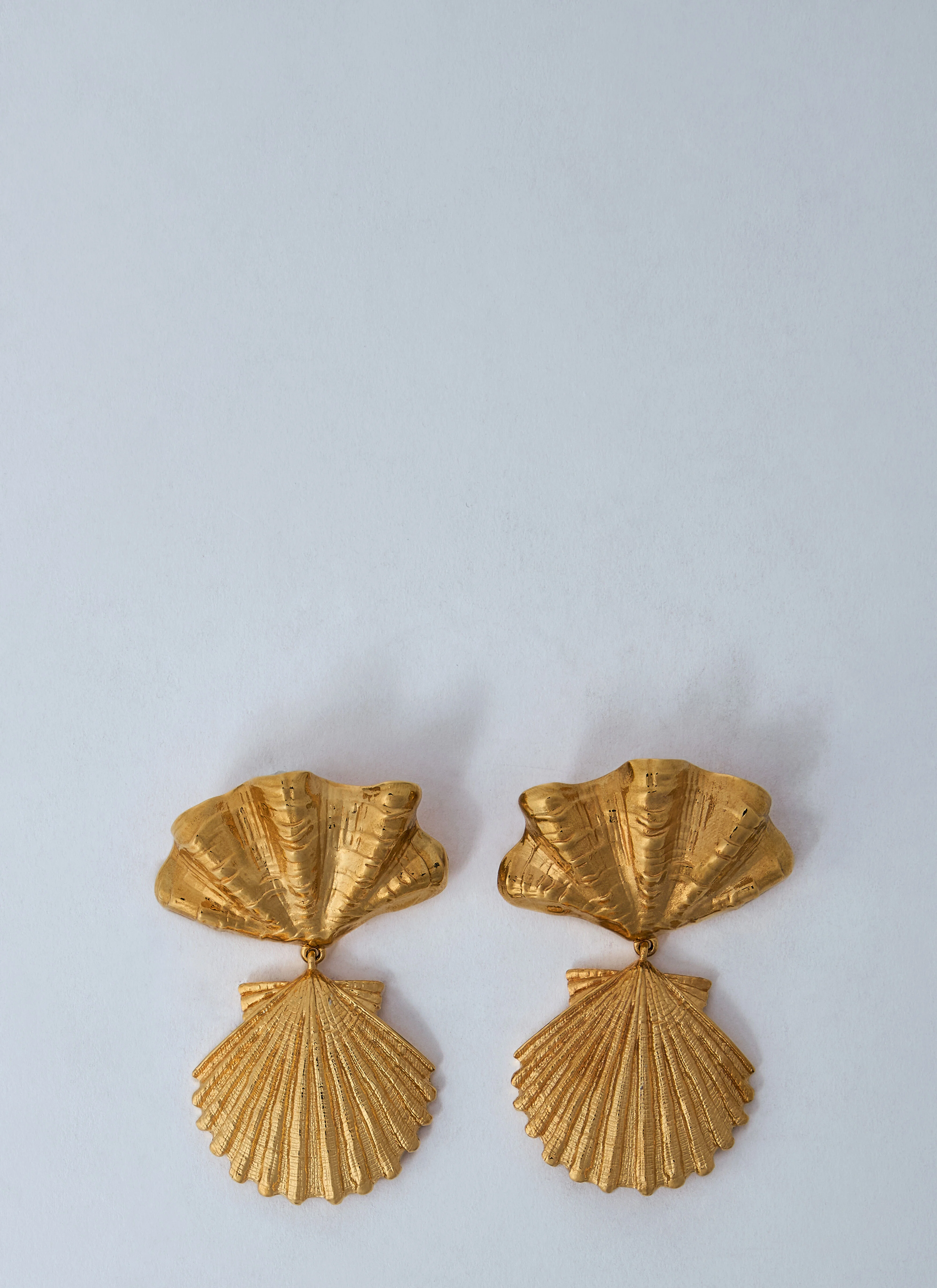 Shell earrings in gold-tone hardware. - Shell dangling pendants - Pull-back clasp - Set of two - 100% Brass - Color: Gold - Code: CHC25UFE32CB79DC