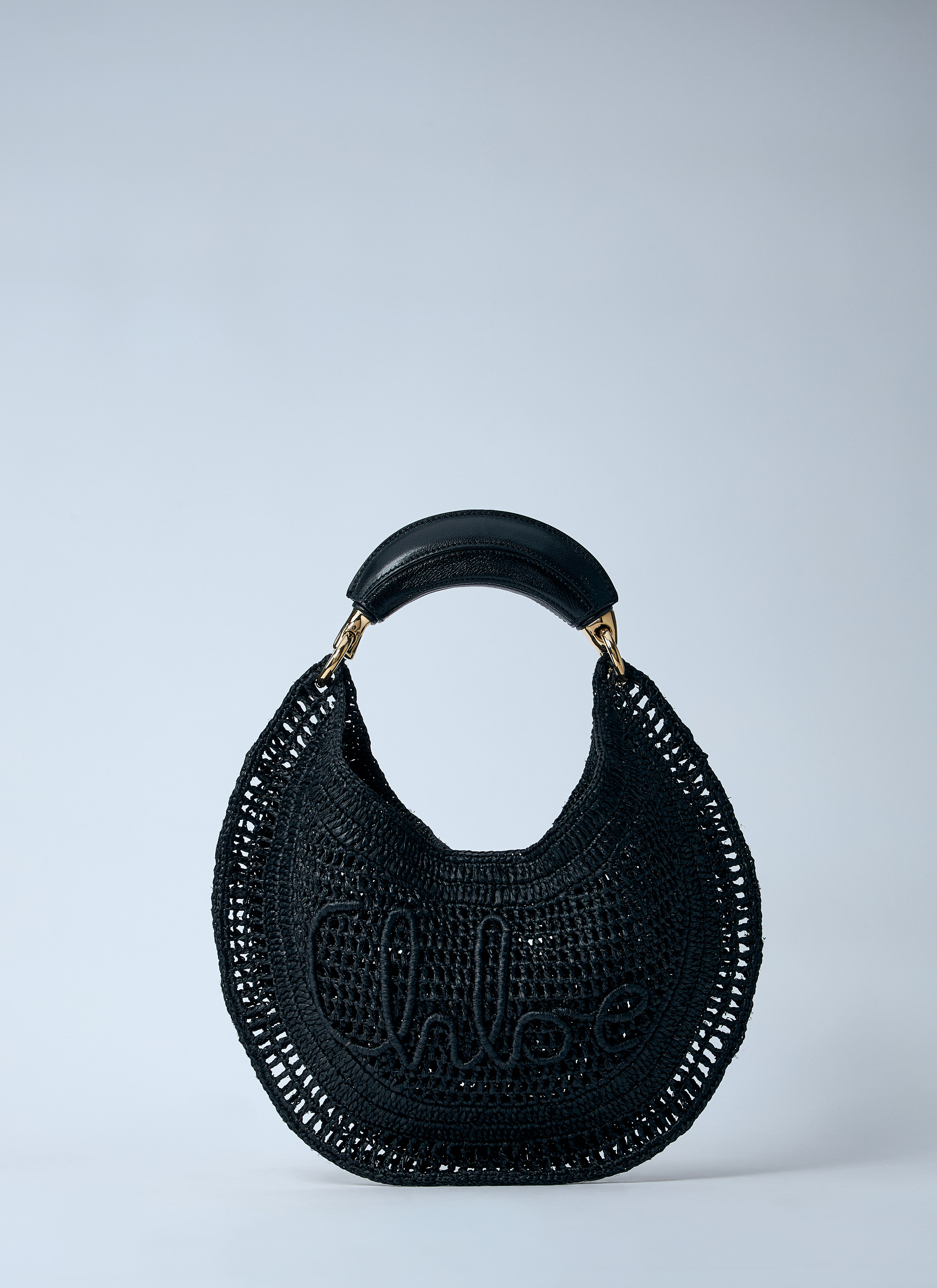 Logo motif shoulder bag in crochet with leather trims. - Top handle - Concealed magnetic closure - One main compartmen - Logo motif at front - Gold-tone hardware - 100% Technical Fabrication Blend. Trims: 100% Leather - Color: Black - Code: CH25US902P08001