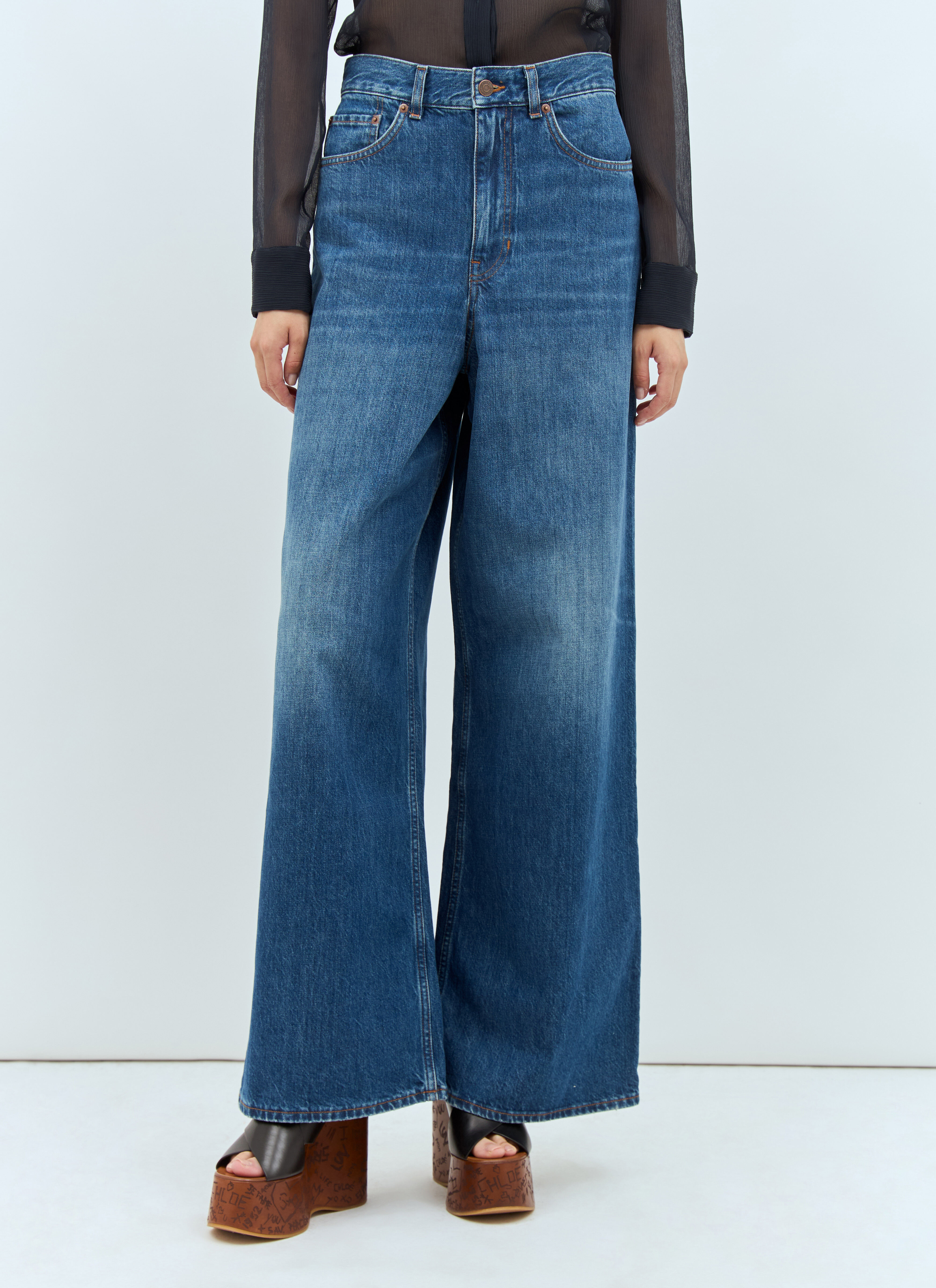 Wide-leg jeans in soft denim with vintage-wash finish. - High rise - Top-button and zip-fly fastening - Belt loops - Five pockets - Rear logo patch - 100% Cotton. Machine wash cold - Color: Blue - Code: CHC24ADP02150402