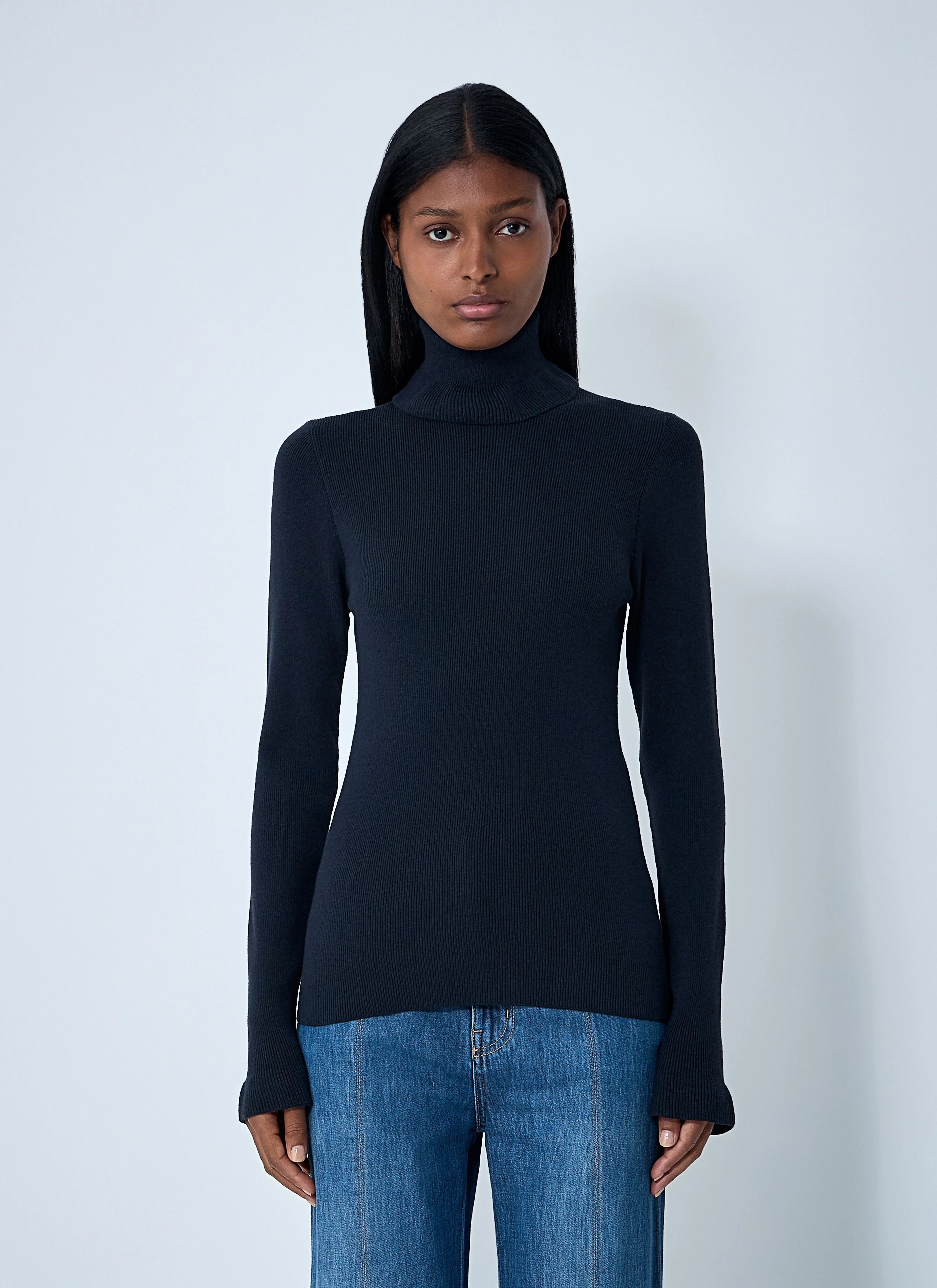Turtleneck sweater in cotton-and-wool-blend knit. - Turtleneck - Long sleeves - Straight hem - 50% Wool, 50% Cotton. Hand wash - Color: Navy - Code: CH25AMP145204C4