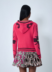 Knitted hooded zip-up cardigan with all-over jacquard. - Hood - Front zip fastening - Long sleeves - Rib trims - 100% Polyamide. Hand wash - Color: Red - Code: 5255
