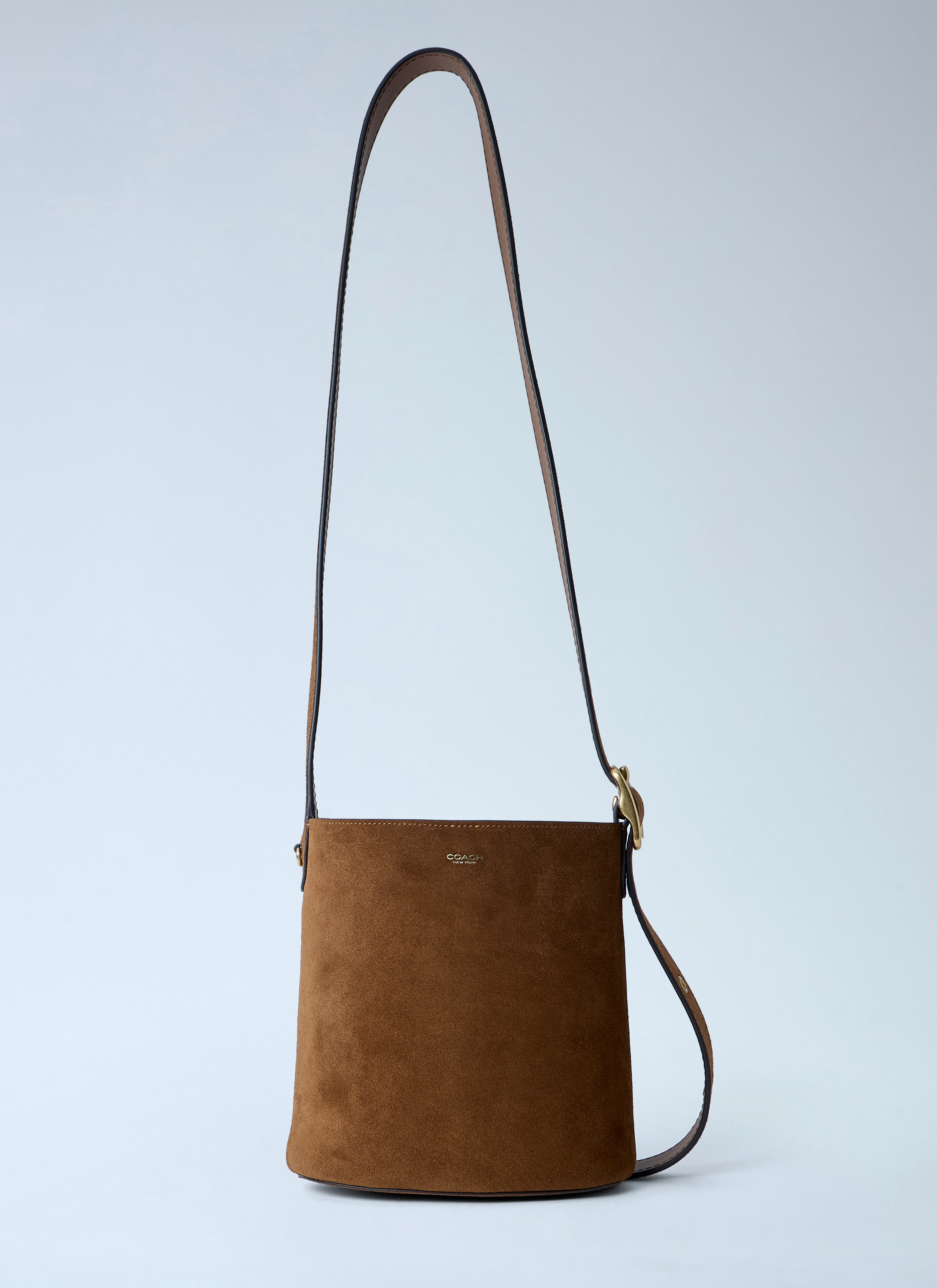 Crossbody bag in smooth suede leather. - Adjustable shoulder strap - Top gold-tone hardware - Open top - 100% Leather - Color: Brown - Code: CCW84 B4WBR
