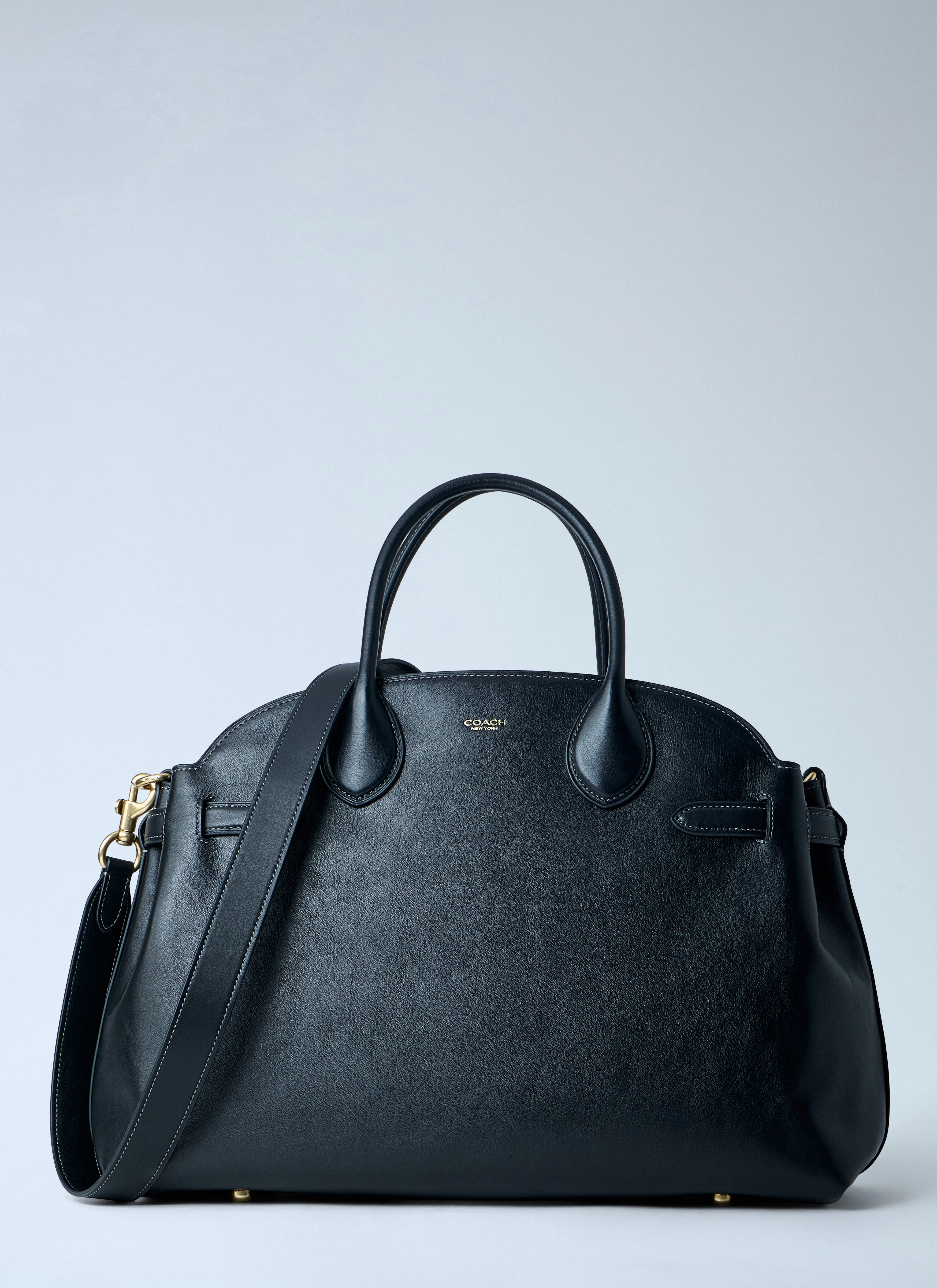 Handbag in structured leather with top handles and strap. - Top handles - Detachable shoulder strap - Zip closure - Protective metal feet - 100% Leather - Color: Black - Code: CW616 B4/BK