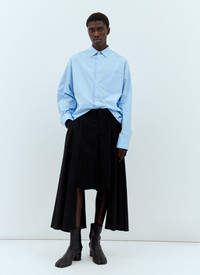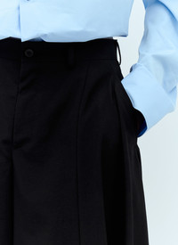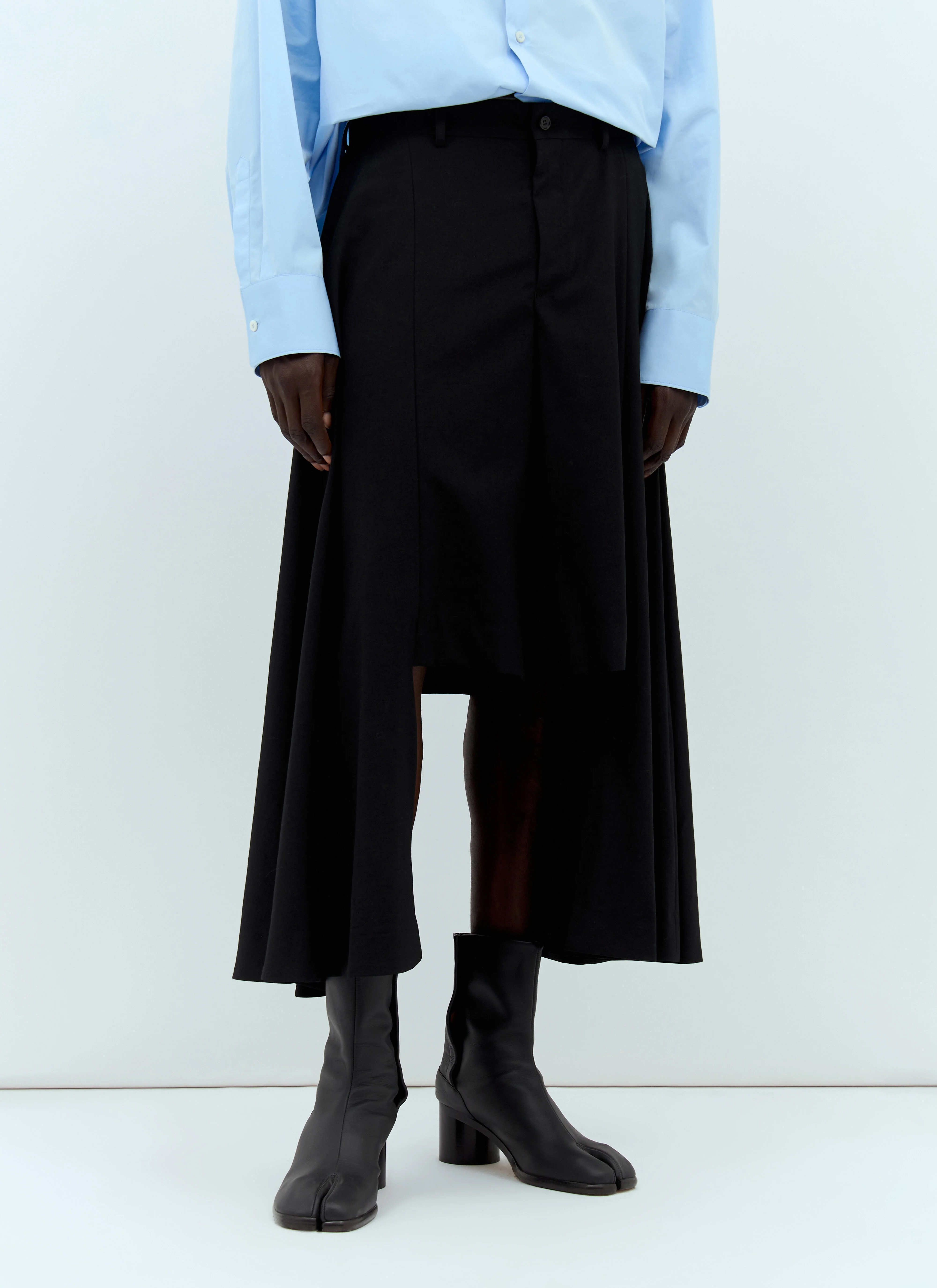 Asymmetric pants in wool. - Mid rise - Top-button and zip-fly fastening - Belt loops - Side slip pockets - Asymmetric legs - 100% Wool. Dry clean - Color: Black - Code: PM-P047-S24-1
