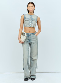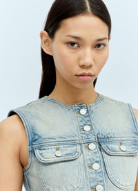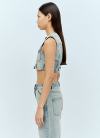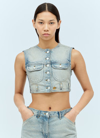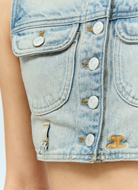 Button-fastening crop vest in denim. - Crewneck - Front button fastening - Flap pockets at chest - Front logo embroidery - Belt loops at hem - 100% Cotton. Machine wash cold - Color: Blue - Code: 124DBL153DE0016 7011