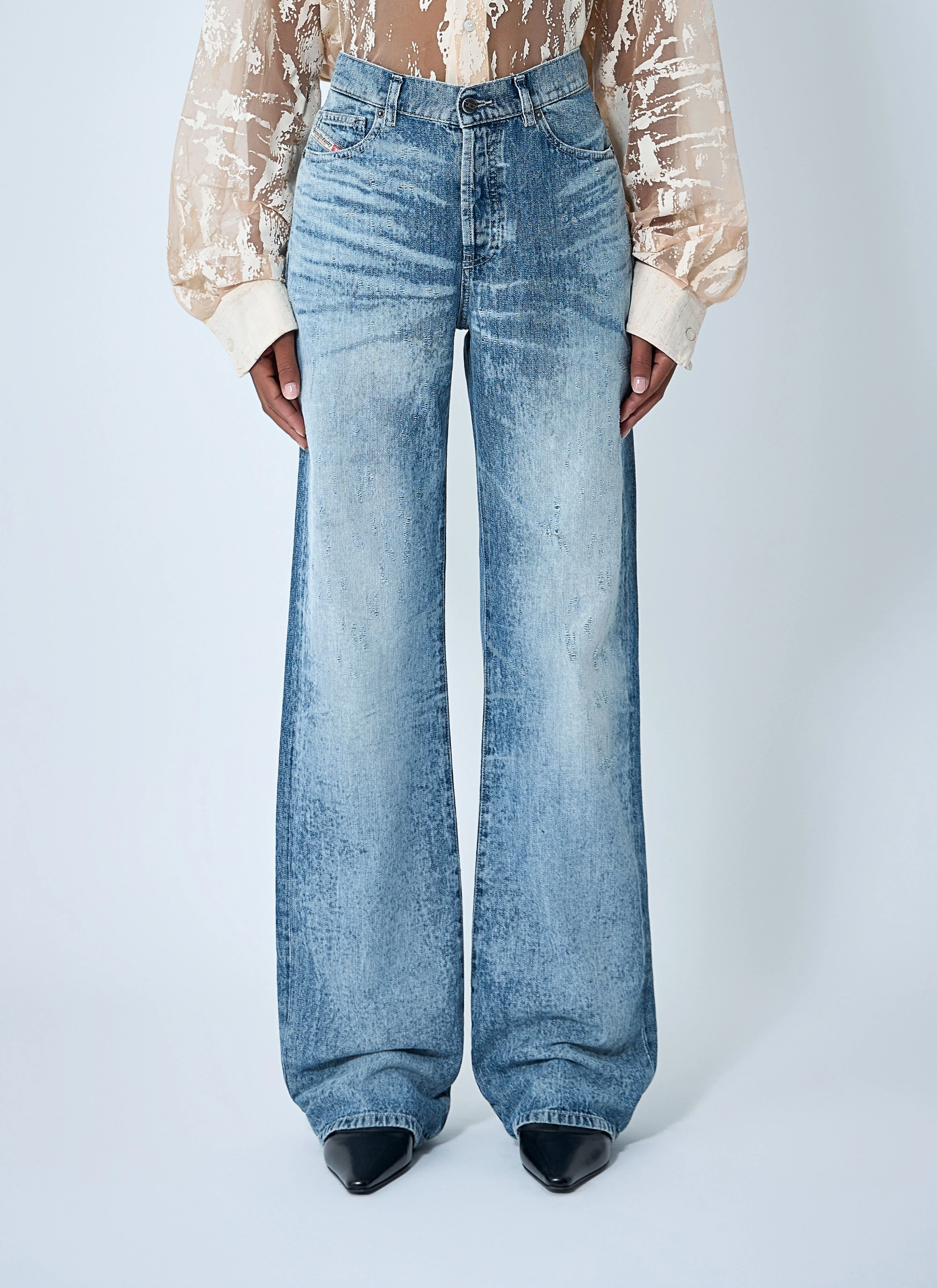 Wide-leg jeans in distressed denim construction. - High rise - Top-button and zip-fly fastening - Five-pocket - 100% Cotton. Dry clean - Color: Blue - Code: A21359 068TY 01