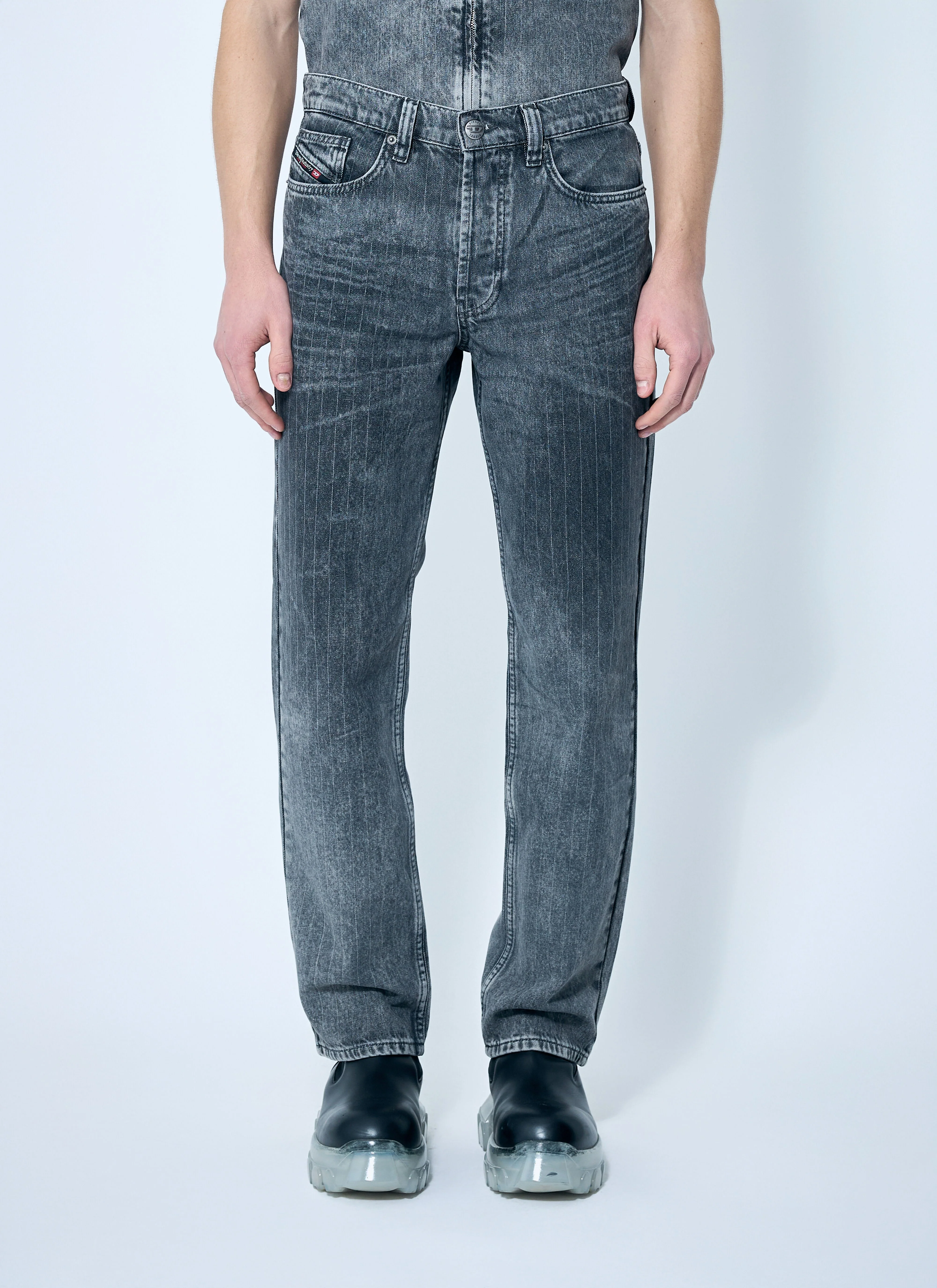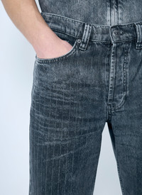 2010 D-Macs jeans with tailoring-inspired pinstripes. - Mid rise - Top-button and zip-fly fastening - Belt loops - Five pockets - Lasered whiskering - Rear logo patch - 100% Cotton. Machine wash cold - Color: Grey - Code: A16987 0ABCU 02