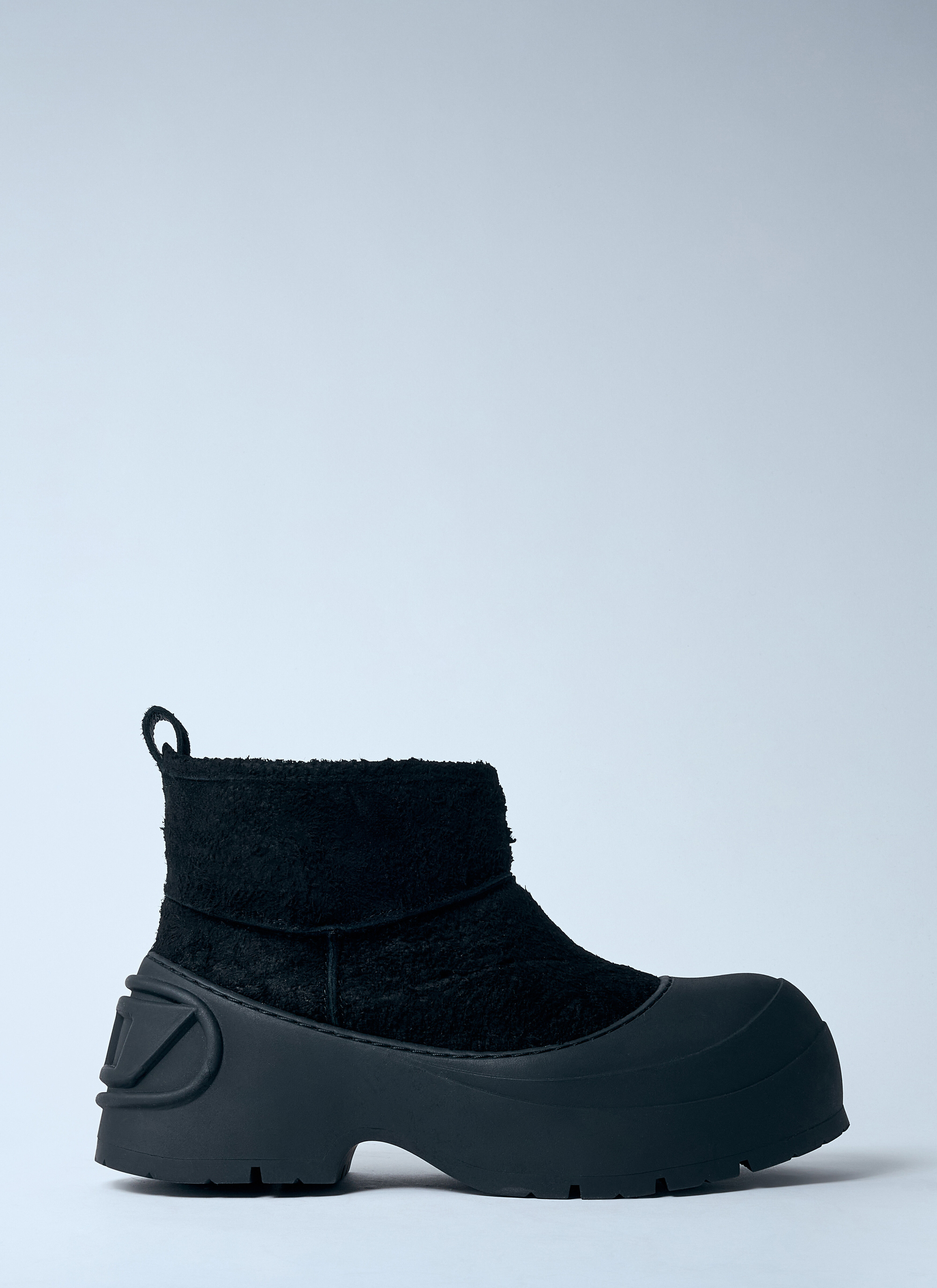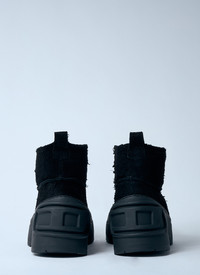 Leather in suede finish. - Exaggerated round toe - Wraparound rear embossed logo motif - Chunky rubber sole - 100% Technical Blend Fabricatiom - Color: Black - Code: Y03586 P6898 T8013