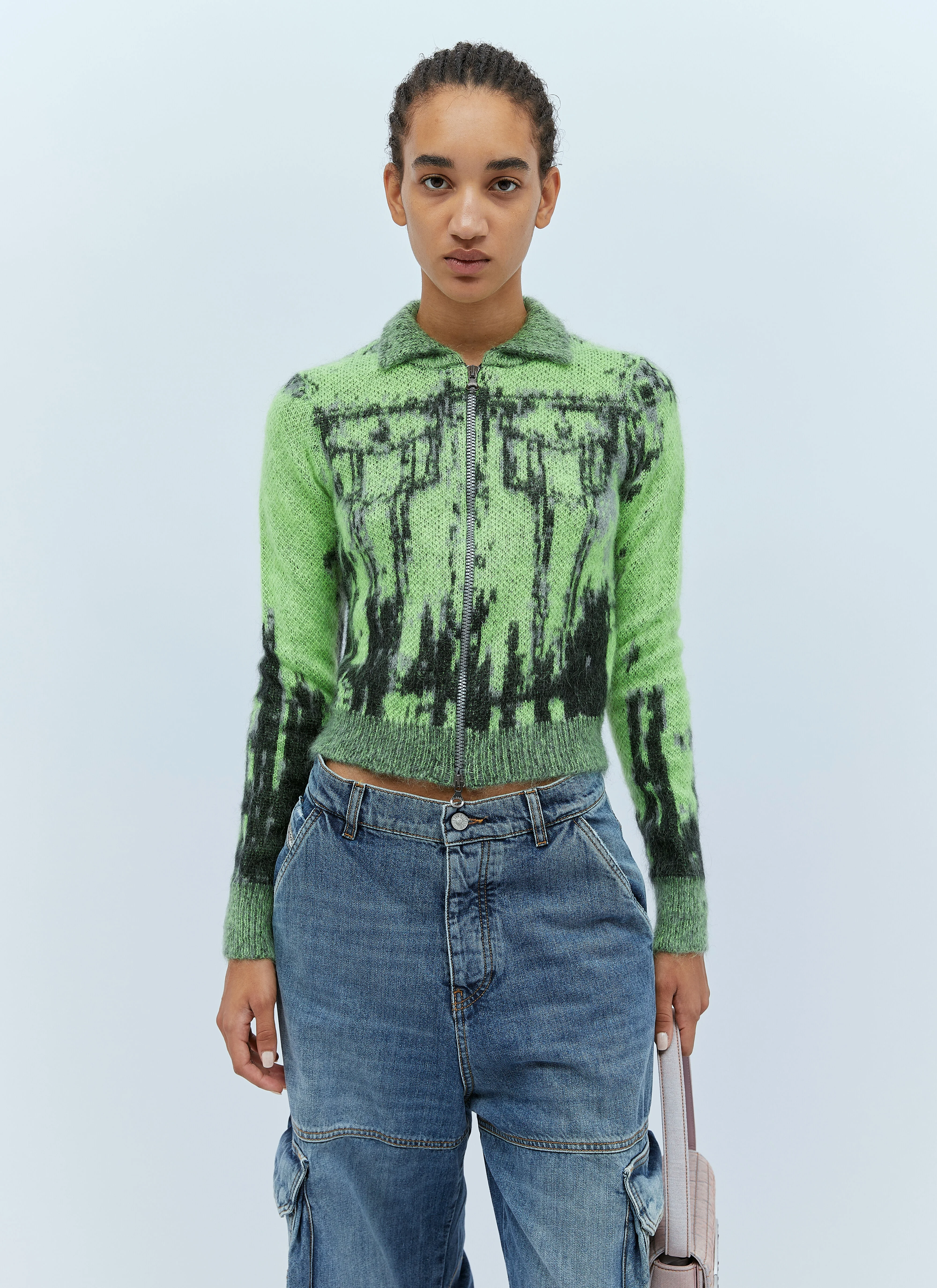 M-Taphos fuzzy sweater in mohair blend in distressed shirt motif. - Stand collar - Front zip fastening - Long sleeves - Ribbed trims - 47% Mohair, 35% Nylon, 18% Wool - Color: Green - Code: A11182 0BMAL 5AS