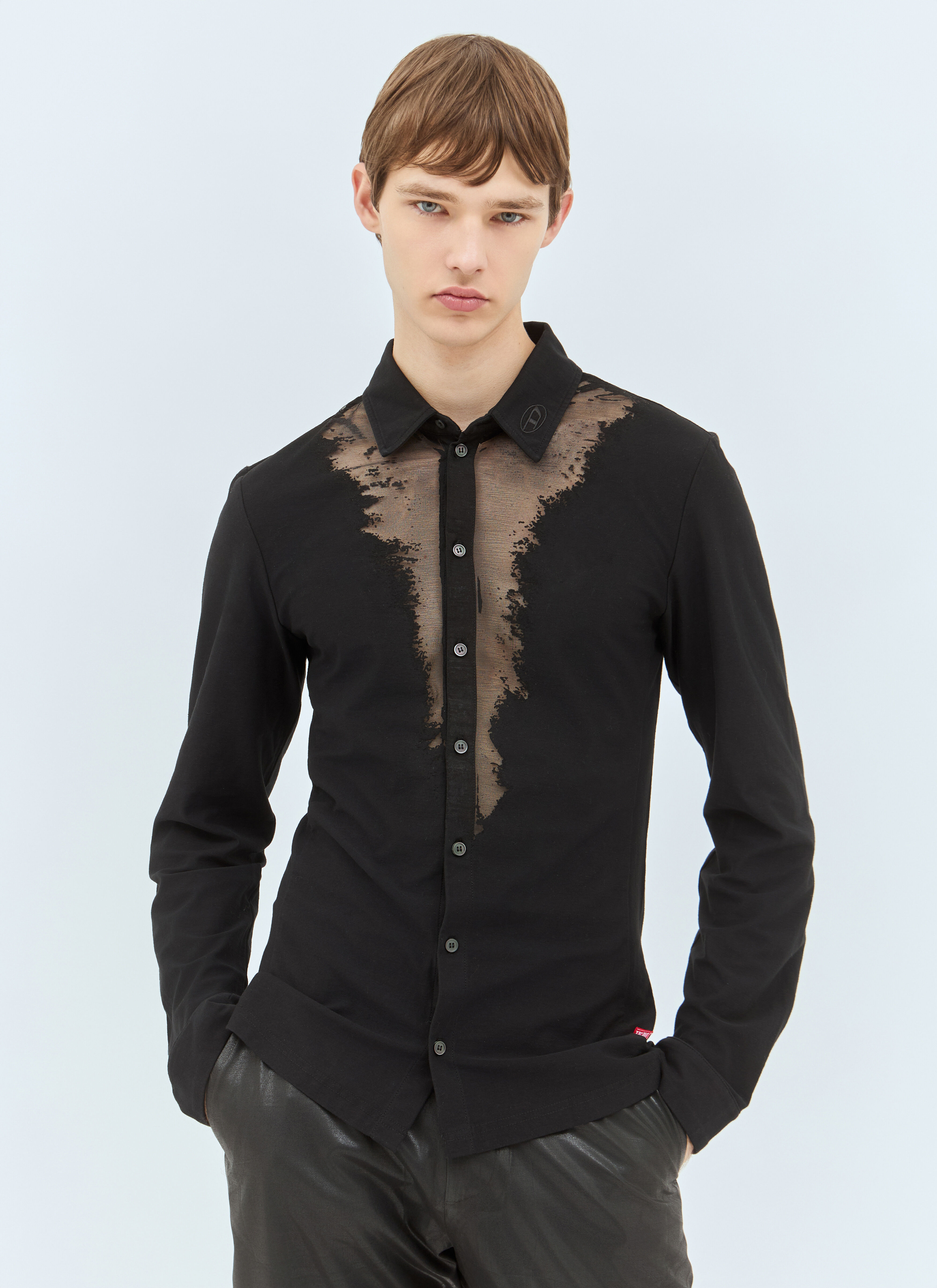 S-Sun-Plain shirti n jersey with devore panels. - Classic collar - Front button fastening - Long sleeves - Button-fastening cuffs - 83% Cotton, 13% Polyester, 4% Elastane. Hand wash - Color: Black - Code: A16393 0SHAY 9XX