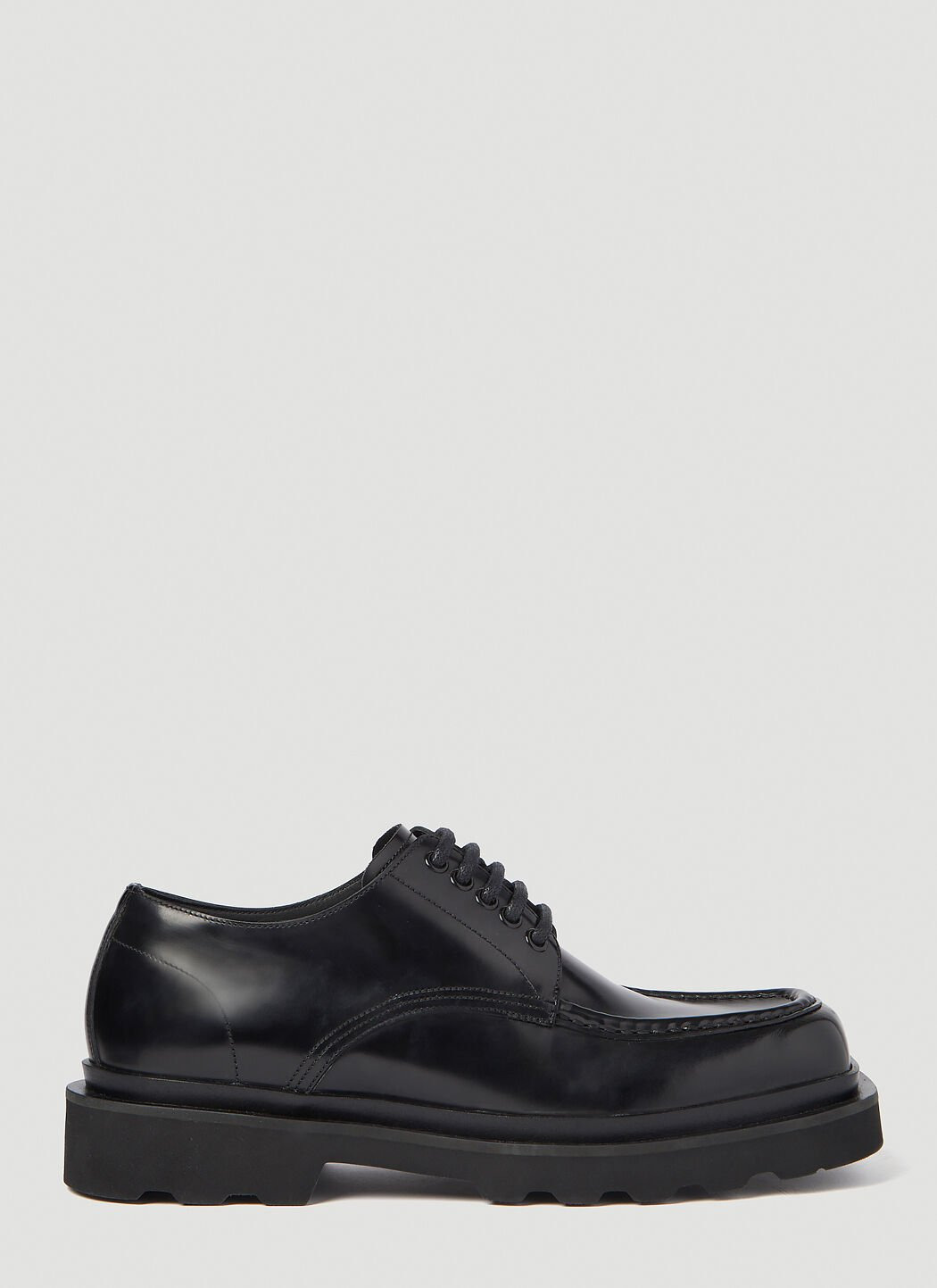 Derby shoes in brushed leather with square toe. - Square toe - Lace-up fastening - Logo patch at footbed - Made in Italy - 100% Leather - Color: Black - Code: A10806 A1203 80999