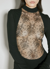 Jersey maxi dress with Chantilly Lace insert at centre. - High neck - Rear zip fastening - Long sleeves - Front lace insert - 84% Viscose, 11% Polyamide, 8% Elastane - Color: Black - Code: F6DJNT FU7DK N0000