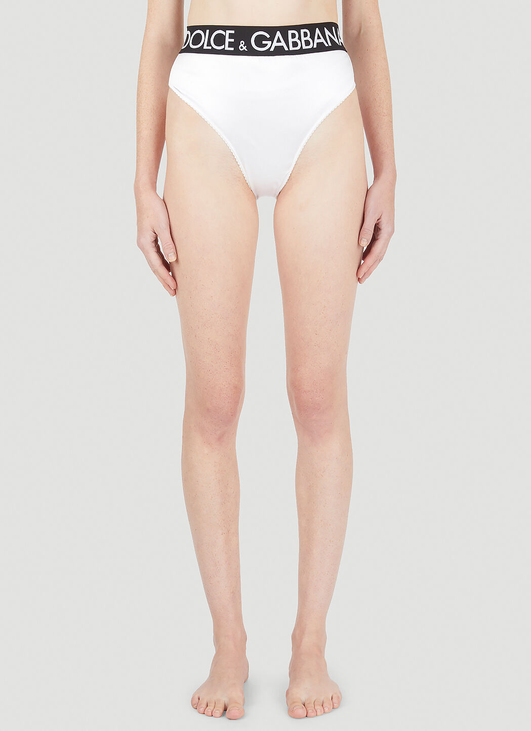 - Technical blend fabrication in a stretch-satin weave - High waist - - Logo jacquard waistband - High leg - Fulle coverage at rear - Made in Italy - 65% Acetate, 29% Nylon, 6% Elastane. Hand wash - Color: White - Code: O2C12T FURAD W0800