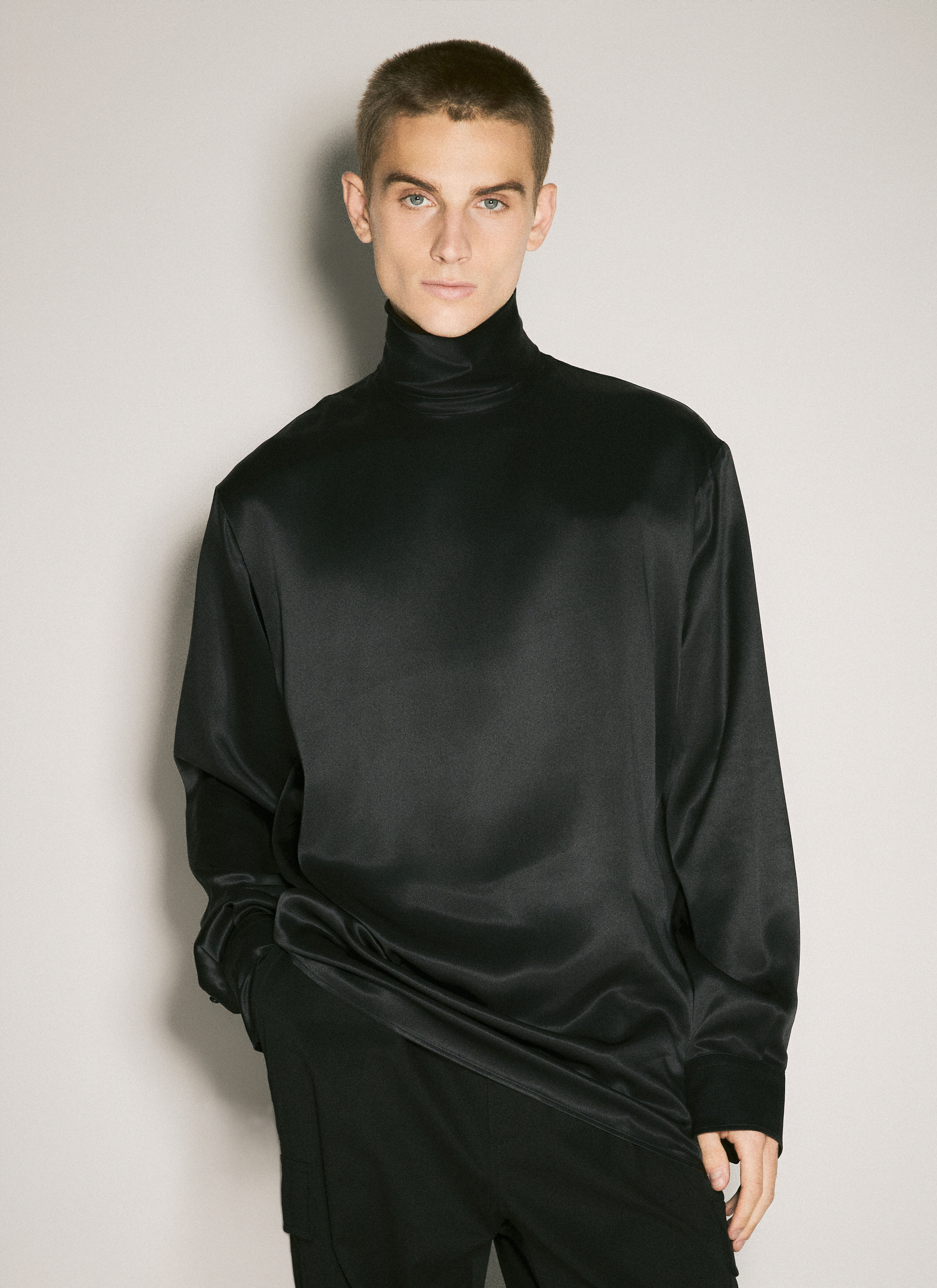 Loose turtleneck top in silk satin with shirt cuff. - Turtleneck - Rear zip fastening - Long sleeves - Button-fastening cuffs - Made in Italy - 100% Silk. Dry clean - Color: Black - Code: G8SD9T FU1NU N0000