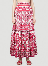 Cotton poplin a-line maxi skirt. - High waist - Rear concealed fastening - Pleated skirt - All-over graphic print - Made in Italy - 100% Cotton. Machine wash cold - Color: Pink - Code: F4CELT HH5BD HE3TN