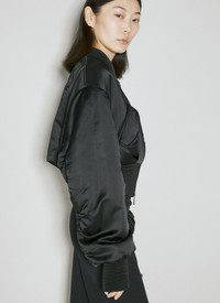 Short duchesse bomber jacket with draped sleeves