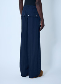 Drawstring pants with a wide-leg. - Mid rise - Drawstring waistband - Side slip pockets - 100% Polyamide. Dry clean - Color: Navy - Code: 252-020993-2328-509