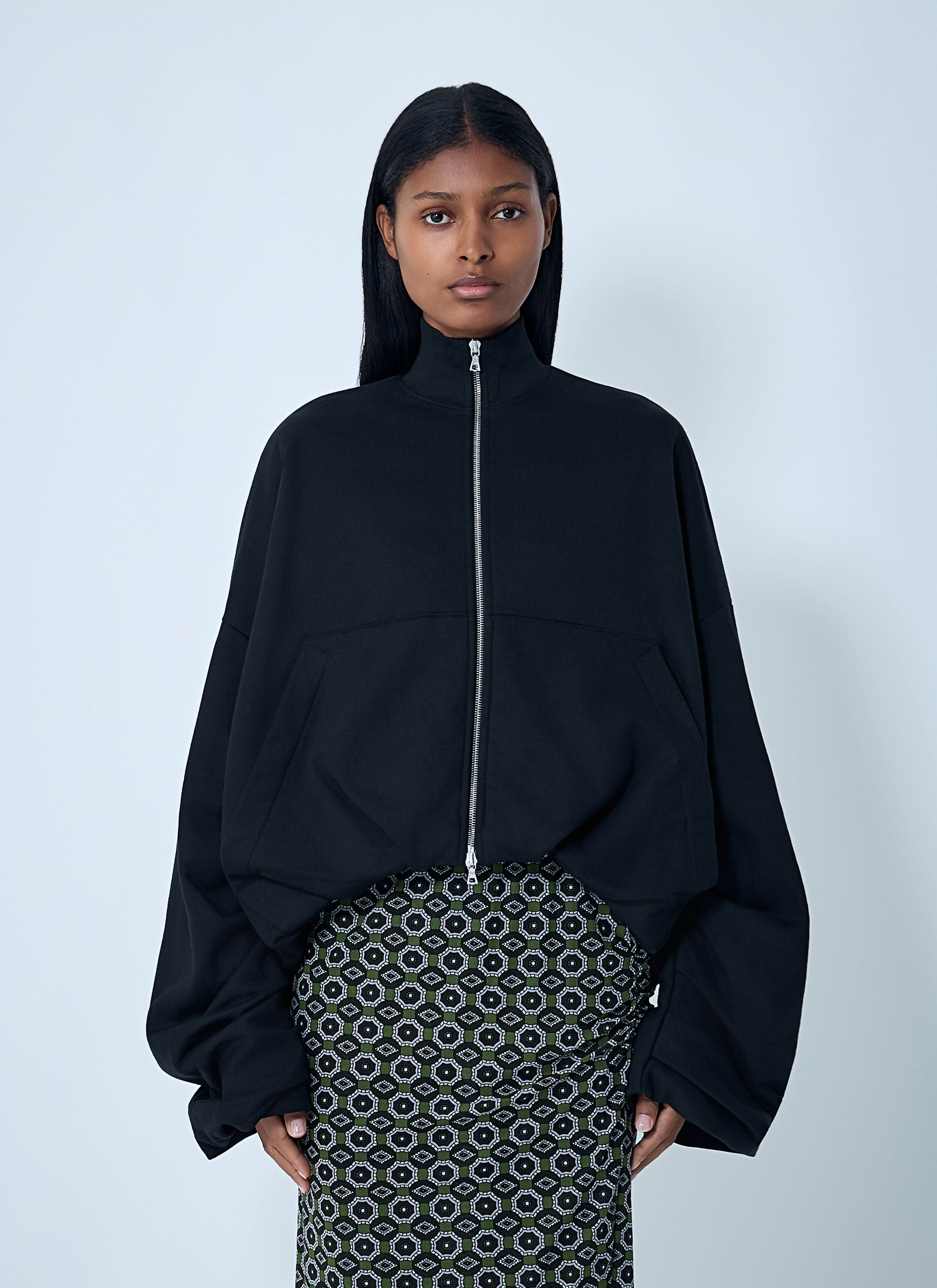 Short jacket coat in cotton gabardine. - High neck - Front zip fastening - Long sleeves - Rib trims - 100% Cotton. Machine wash cold - Color: Black - Code: 252-011129-2611-900