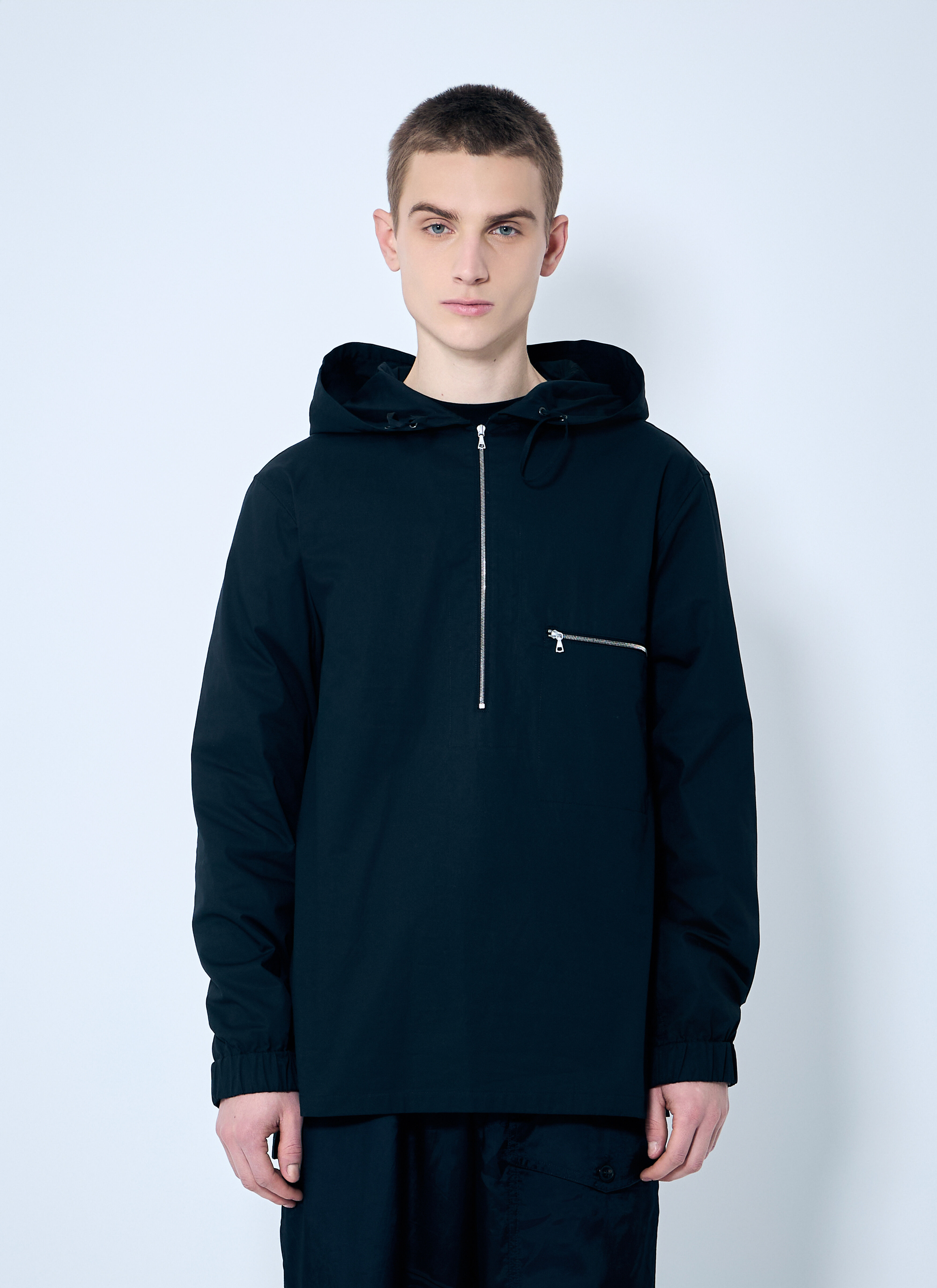 Zip-up shirt in cotton-poplin. - Hood - Front zip fastening - Long sleeves - Zip fastening pockets at chest - Elasticated cuffs - 100% Cotton. Dry clean - Color: Black - Code: 251-020738-1147 900