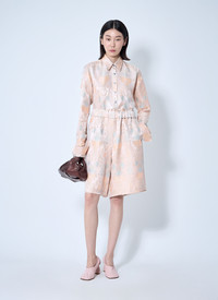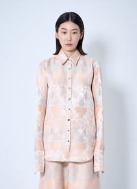 Button-down shirt in floral jacquard. - Classic collar - Front button fastening - Long sleeves - Button-fastening cuffs - 67% Acetate, 33% Viscose. Hand wash - Color: Pink - Code: 010712 1540 313