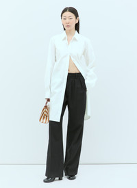 Open-rear shirt in cotton poplin. - Classic collar - Front buttons - Long sleeves - Button fastening cuffs - Open at rear - 100% Cotton. Dry clean - Color: White - Code: 241-010733-8329 1