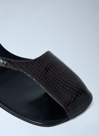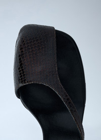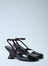 Curved heel court shoes with cut-out. - Square toe with cut-out - Side buckle strap - Wedge heel - Made in Italy - 100% Leather - Color: Dark Brown - Code: 252-011714-350 704