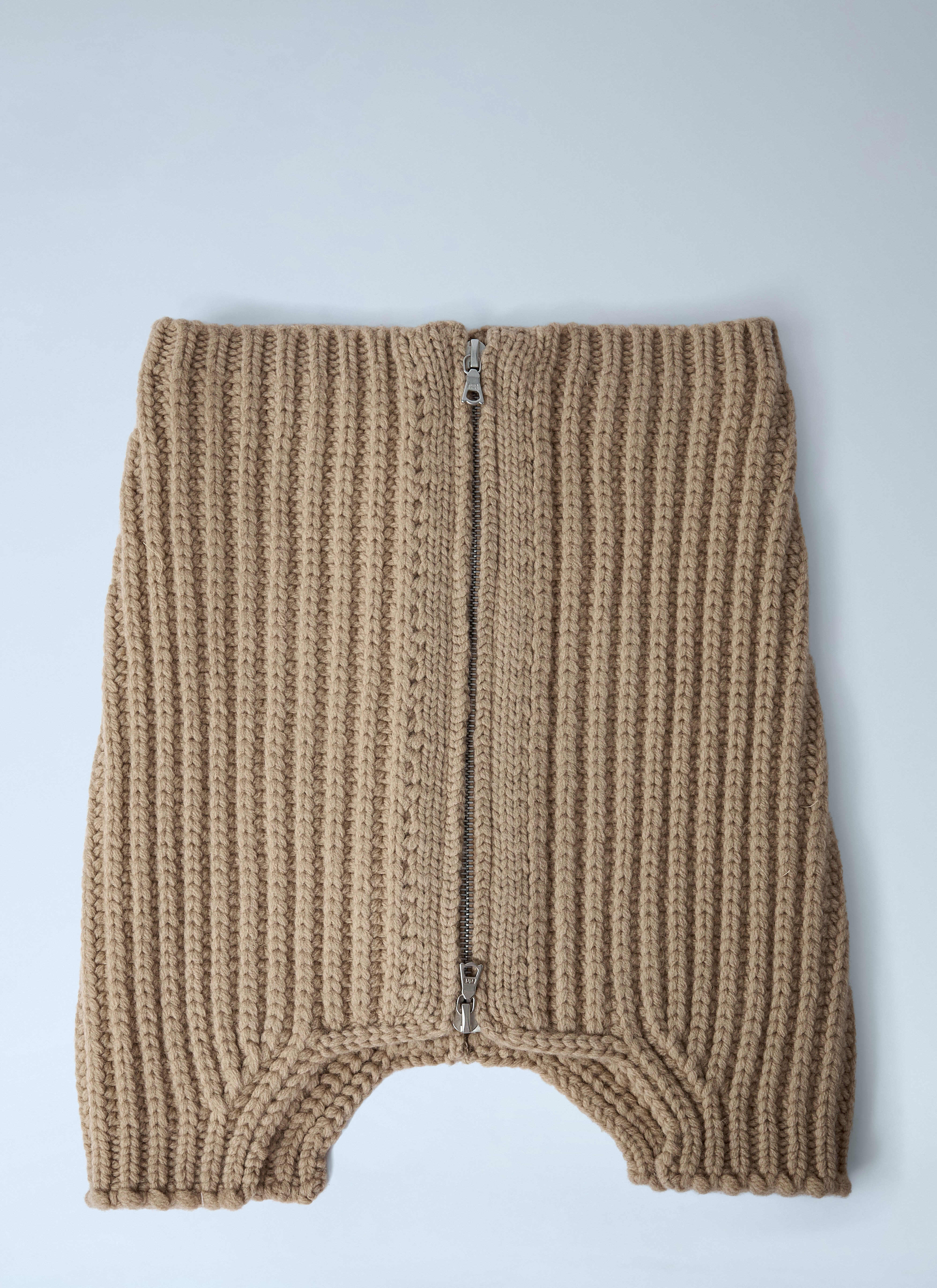 Zip-Up scarf in wool knit. - Zip fastening - Ribbed - 100% Wool - Color: Beige - Code: 252-021214-2707-103