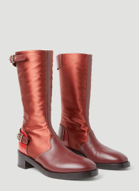 satin leather buckle boots